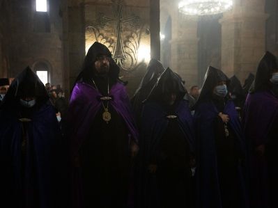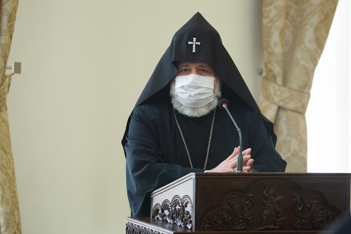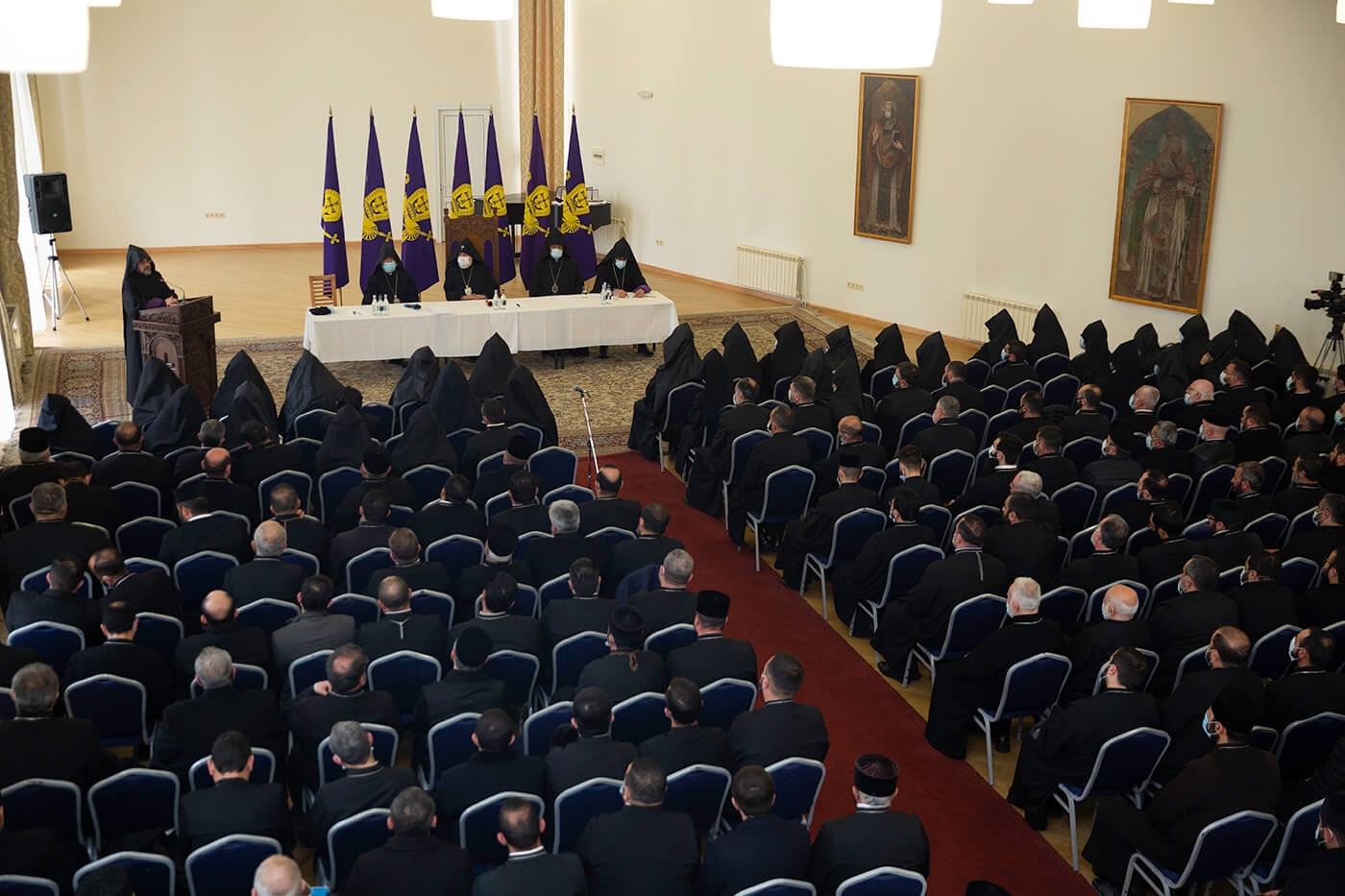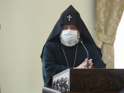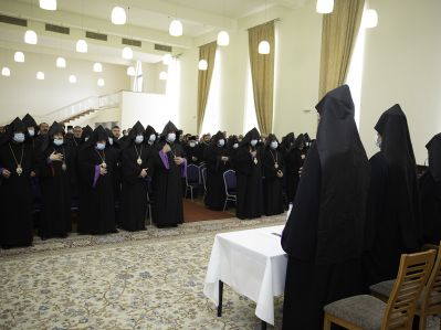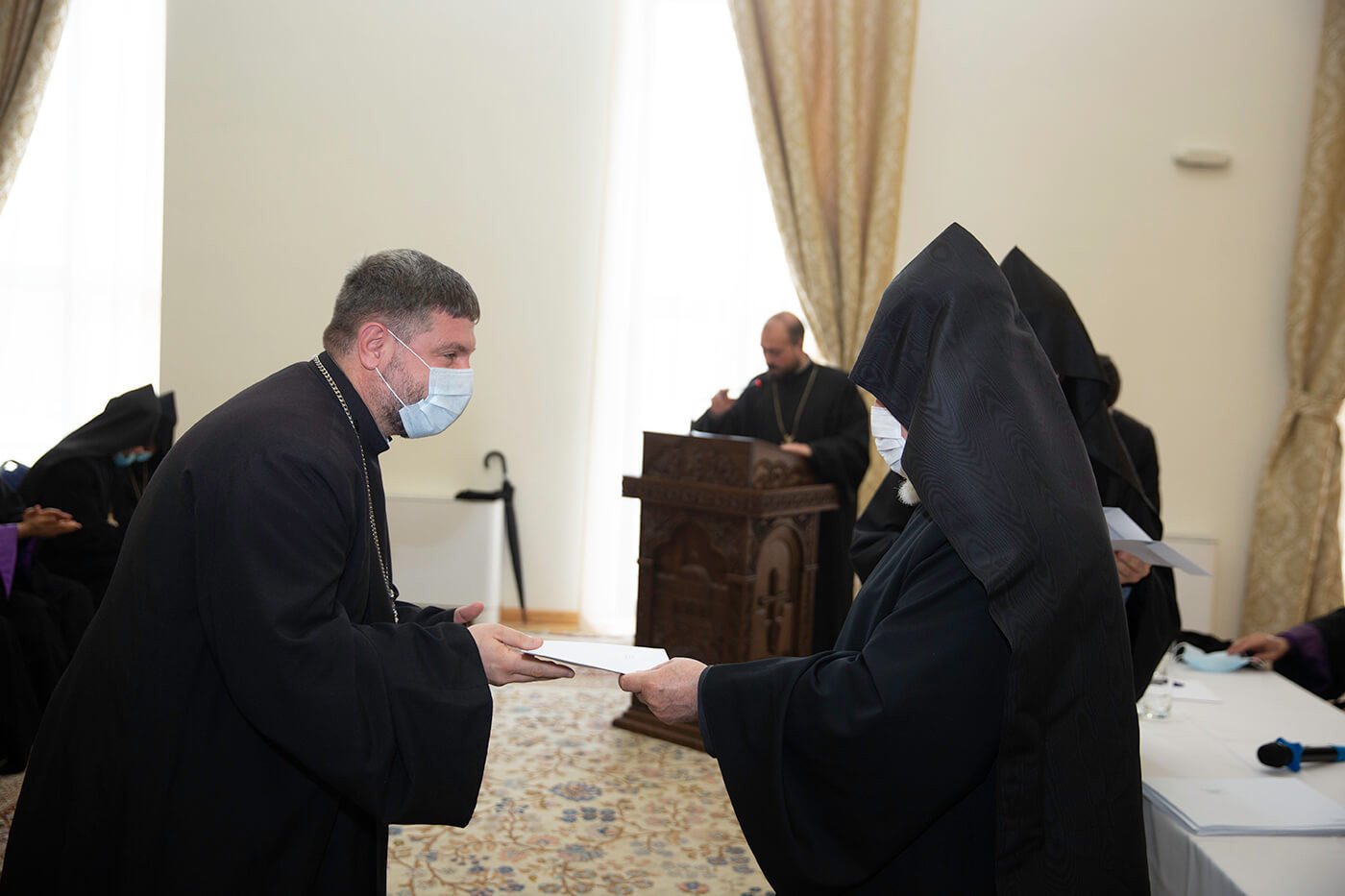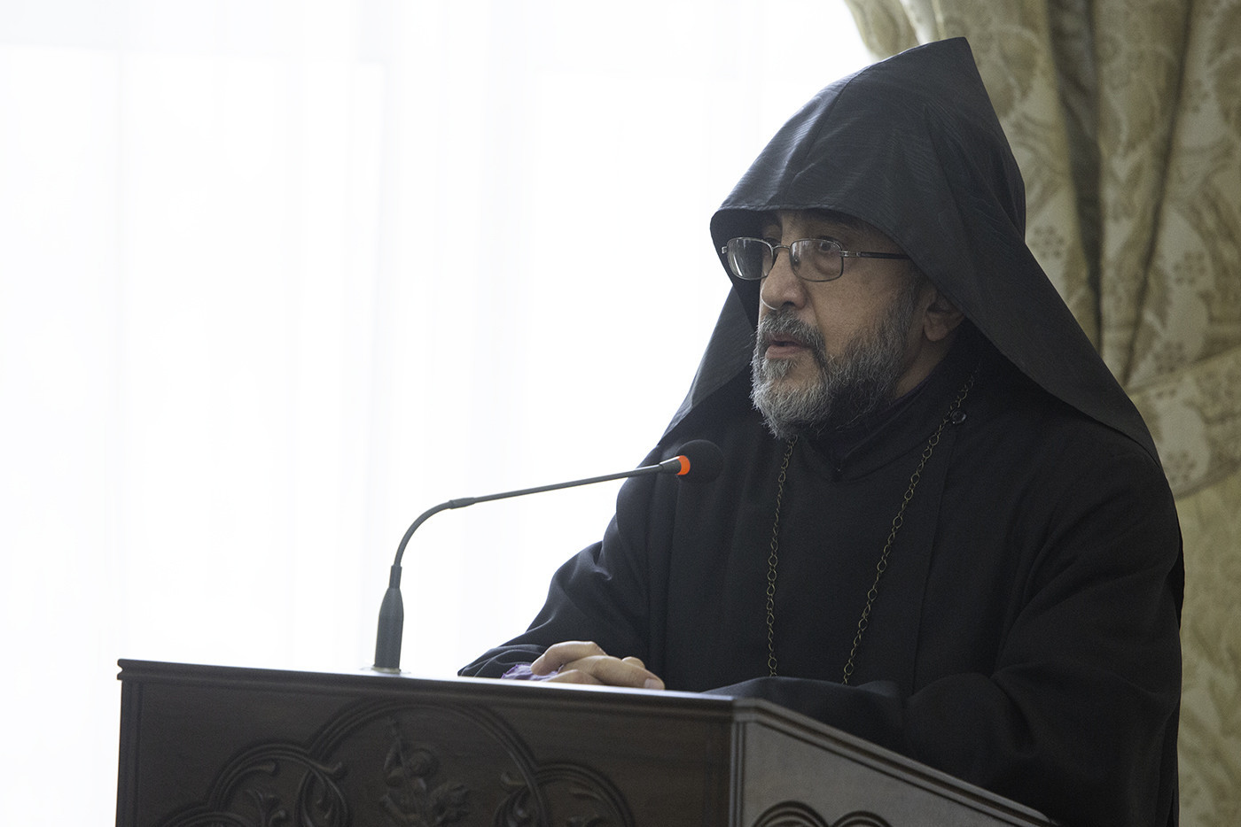 On February 09, the Armenian Apostolic Holy Church celebrated the Feast of St. Ghevond the Priest. On this occasion, 230 clergymen gathered in the Mother See of Holy Etchmiadzin, including 13 Diocesan Primates, 29 members of the Brotherhood of the Mother See: bishops, archimandrites and celibate priests; as well as 188 priests from the dioceses of Armenia and Artsakh. On the occasion of the feast, under the presidency of His Holiness Karekin II, Supreme Patriarch and Catholicos of All Armenians; the Divine Liturgy was celebrated at the Holy Mother of God Church of Vagharshapat. The celebrant was Rev. Fr. Khoren Maruqyan, spiritual pastor of the Holy Martyrs Church of Davitashen, Yerevan. ''Being in united and general prayer during the Divine Liturgy, we experience special and unique feelings, because we have the opportunity to renew priestly covenant of our spiritual service, to appreciate more the deep feelings and virtues of living with the meaning of "for the sake of faith'' and ''for the sake of the homeland" coming from the depths of the centuries’’- emphasized Fr. Khoren in his sermon, expressing his gratitude to His Holiness for the opportunity to be again under the hospitable warmth of Holy Etchmiadzin. Reflecting on the sacrament of the day, Rev. Fr. particularly mentioned: “There are dates in history for nations, the commemoration and celebration of which ignite fires in the hearts of the people. Such is the heroic battle of Ghevondyants and Vardanants in 451 in the history of our people. …the commemoration of the heroic battle of Ghevondyants and Vardanants is the story of our high consciousness of national dignity, patriotism, love toward God, martyrdom and existence. Today is the best day for every Armenian to renew his covenant to maintain the homeland, the Church, the language and rich culture. ''…The heroic battle of Ghevondyants and Vardanants is not just an epical episode, but a force that lives, inspires, organizes for centuries, a spirit, a pillar of fire always burning in the Armenian sky, which has guided our people troughout its history. That is why we exist today.” Reflecting on the heroic battle of our days, the Rev. Fr. Emphasized: “We had martyrs in the last war and we bow down before the spirit of their martyrdom. All of them were martyred with the heroic spirit of Ghondiants and Vardanants due to the conscious death toward homeland. No matter how bitter the outcome of the war was for us, we have no right to despair. Just as the price of the blood shed by the martyrs of Gondyants և Vardanants was the perpetuation of our existence, so the price of the sacrifice of the victims of the Artsakh war the guarantee of not committing genocide for the second time. On the occasion of the feast, Rev. Fr. brought his congratulations those present, granting “May God grant us all wisdom, strength and ability to guide our people according to the commandments of the Gospel by renewing the priestly covenant of spiritual service through our zealous, dedicated service and special warmth, to get rid of the hatred of disunity, intolerance, opposition and hatred, the traits that do not appreciate and do not value the role and significance of the Church, the phenomena that live in obsession and perversion, the penitent who does not seek care for salvation among us. The heroic spirit of Ghevondyants and Vardanats let be a weapon for us, so that we can restore and establish historical justice and the dreams of the martyrs of the homeland.” Following the Divine Liturgy, at the Events Auditorium of the Gevorkian Theological Seminary an awards ceremony was held for the priests serving in the Dioceses and Armenian Church institutions. His Eminence Archbishop Mikael Ajapahyan; Primate of the Diocese of Shirak, welcomed the clergy in commemorating the Feast of St. Ghevond the Priest. Following opening remarks, the awards ceremony was held. In appreciation of their long-term devoted and productive pastoral service to the Armenian Church, a number of clergymen were awarded the honor of Archpriest, as well as the right to wear the flowered copea and Pectoral Cross. Rev. Fr. Khoren Kirakosyan; Rev. Fr. Paruyr Avetisyan; Rev. Fr. Vahram Melikyan; Rev. Fr. Adam Makaryan (Mother See of Holy Etchmiadzin) and Rev. Fr. Tirayr Glchyan from the Armenian Diocese of France were elevated to the rank of Archpriest, for their long-term and dedicated pastoral service to the Armenian Church. Rev. Fr. Babken Hayrapetyan; Rev. Fr. Grigor Grigoryan; Rev. Fr. Tovma Andreasyan; Rev. Fr. Shmavon Ghevondyan; Rev. Fr. Zgon Abrahamyan; Rev. Fr. Vahan Araqelyan and Rev. Fr. Ararat Ordoyan from the Araratian Pontifical Diocese; Rev. Fr. Simeon Araqelyan and Rev. Fr. Torgom Margaryan from the Diocese of Tavoush; Rev. Fr. Haykaz Masoyan from the Diocese of Kotayk; Rev. Fr. Nshan Sargsyan from the Diocese of Gegharkunik; Rev. Fr. Sepouh Harutyunayan from the Diocese of Vayots Dzor; Rev. Fr. Tiratur Sardaryan from the Armenian Diocese in Germany; Rev. Fr. Psak Mkrtchyan; Rev. Fr. Hakob Grigoryan and Rev. Fr. Galust Sahakyan from the RA Army Chaplaincy were granted the honor to wear the ornamented cope. Rev. Fr. Varazdat Najaryan and Rev. Fr. Gyut Galstyan from the RA Army Chaplaincy; Rev. Fr. Makar Galamdaryan and Rev. Fr. Narek Antonyan from the Diocese of Shirak; Rev. Fr. Hamazasp Hageyan from the Diocese of Kotayk; Rev. Fr. Simeon Hovhannisyan from the Diocese of Gegharkunik; Rev. Fr. Levon Davtyan and Rev. Fr. Vagharsh Hakobyan from the Diocese of Gougark; Rev. Fr. Gevorg Abyan and Rev. Fr. Artashes Hakobyan from the Diocese of Masyatsotn; Rev. Fr. Beniamin Tsaturyan from the Diocese of Artsakh; Rev. Fr. Ashot Abrahamyan from the Saint Gregory the Illuminator Mother Cathedral of Yerevan; were granted the right to bear pectoral crosses. At the end of the Award Ceremony, the Catholicos of All Armenians conveyed His Blessings and Pontifical message to the clergy. Warmly congratulating the clergy on the oc