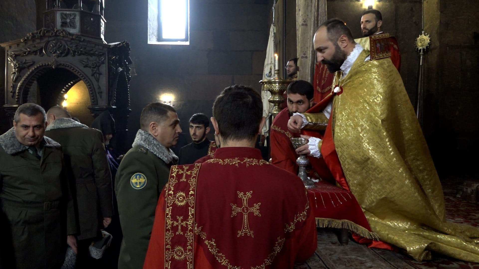 The sacred ceremony was attended by Major General Edvard Asryan, chief of staff of Armenian Armed Forces; representatives of the highest officers of the RA Armed Forces; Andranik Kocharyan, Chairman of the RA NA Standing Committee on Defense and Security Issues; Brotherhood of the Mother See and Chaplains of the RA Army Chaplaincy.