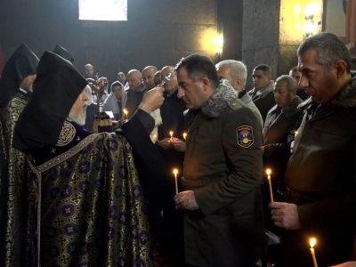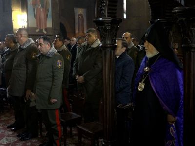 At the conclusion of the Divine Liturgy, under the chairmanship of the Catholicos of All Armenians, a requiem service was held for the peace and tranquility of the souls of the brave Armenians who died in the battles of national defense. Afterward, an official reception was held in the hall of "Eurnekian" public school, during which the Catholicos of All Armenians conveyed his blessing on the occasion of the Army Day to the highest officers, soldiers and spiritual servents of the RA Armed Forces.