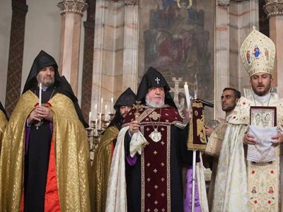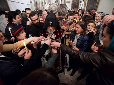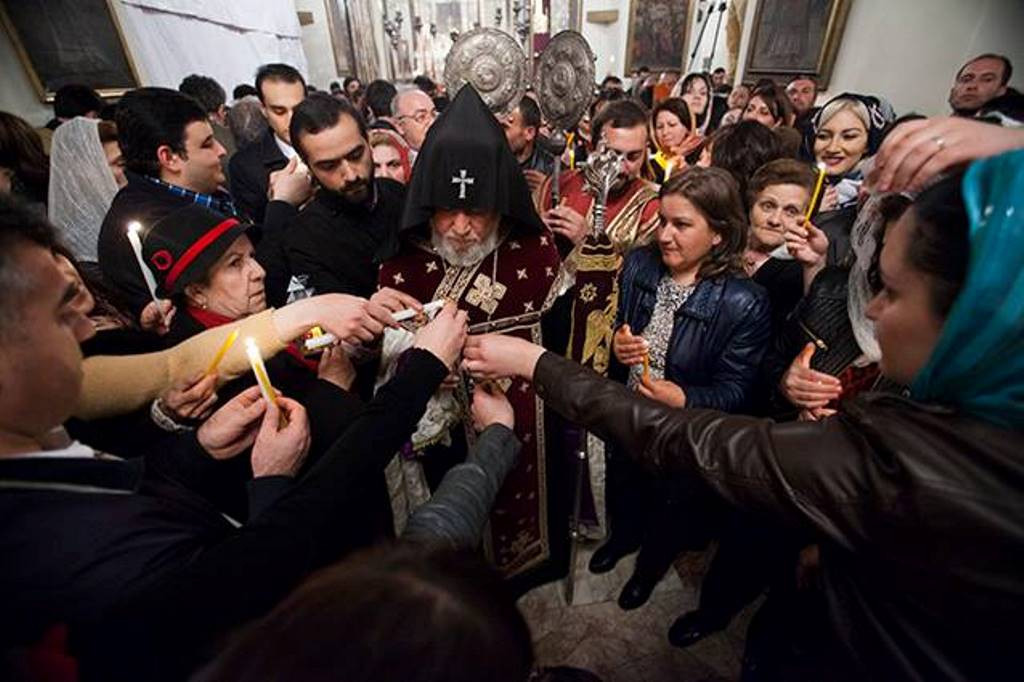 Holy Week services were held in the Mother See of Holy Etchmiadzin with unique mystery and reverence. On the evening of Saturday, 27 March, a Candlelight Divine Liturgy was celebrated on Easter Eve in the Mother See of Holy Etchmiadzin. His Holiness Karekin II, Supreme Patriarch and Catholicos of All Armenians presided in the Mother Cathedral.