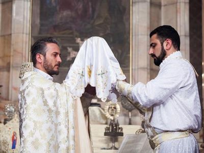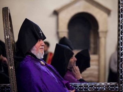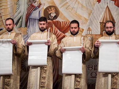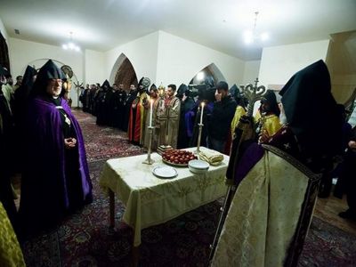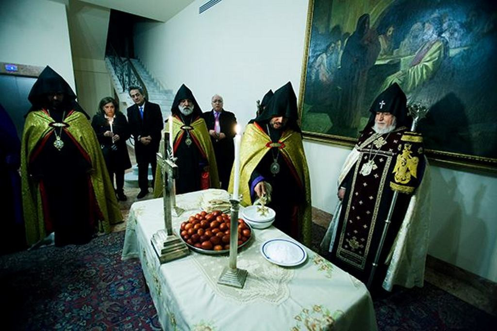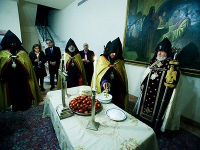 Following the Divine Liturgy, the procession of clergy went to the Old Veharan where under the presidency of His Holiness Karekin II, Supreme Patriarch and Catholicos of All Armenian; an Easter Home-Blessing Service was offered.