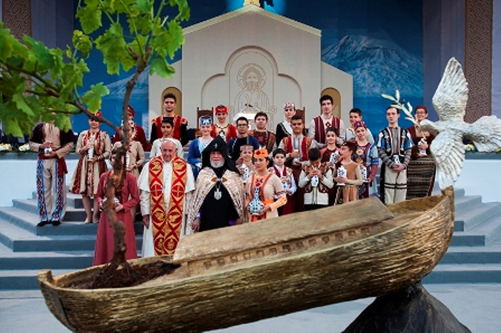 Your Holiness, on the occasion of your historic visit to Armenia, which you call a pilgrimage, on behalf of our people You will be handed a symbolic gift - a sculpture of Noah's Ark. Noah's Ark, which descended to the top of Mount Ararat is the enduring symbol of mankind's salvation and rebirth. In the recent years, Armenia became such an ark of salvation for thousands of families who became refugees in the Middle East and who are the descendants of Armenians who survived the Armenian Genocide.