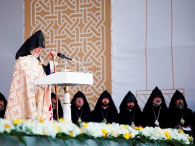 During the Service the Catholicos of All Armenians conveyed his blessings and remarks to the attendees.