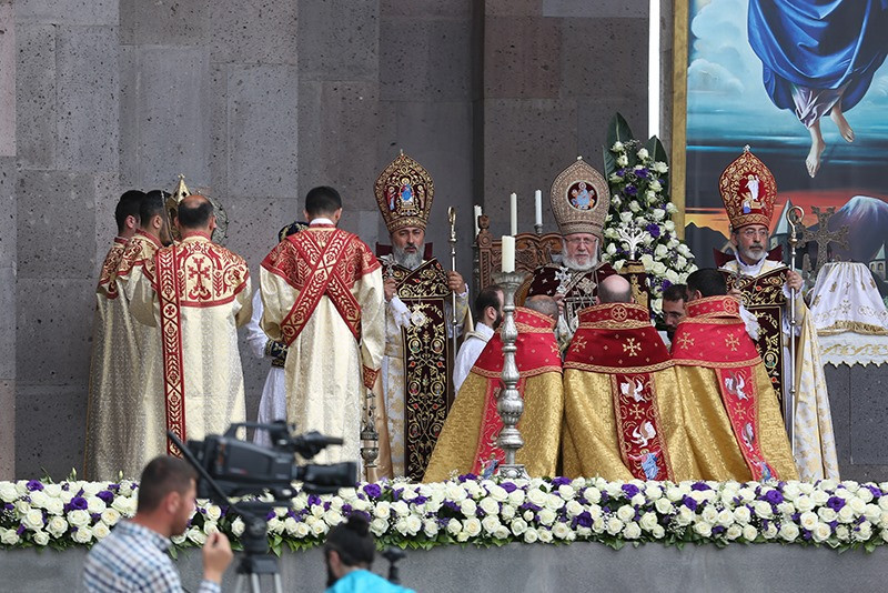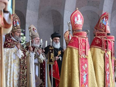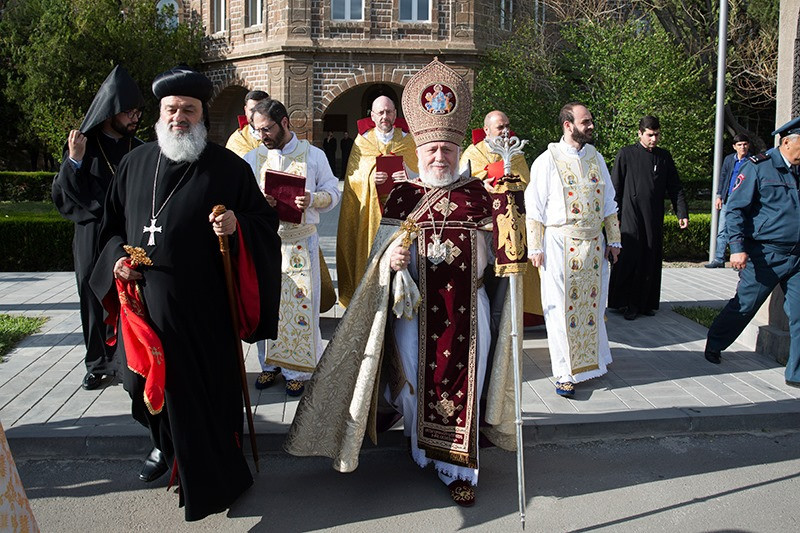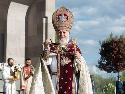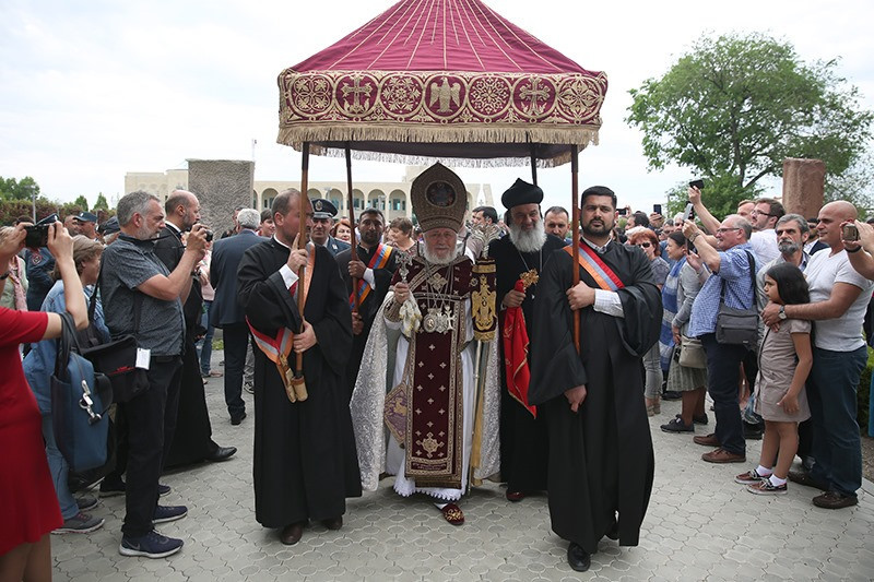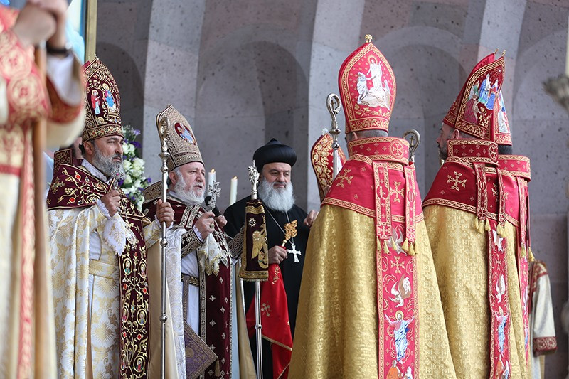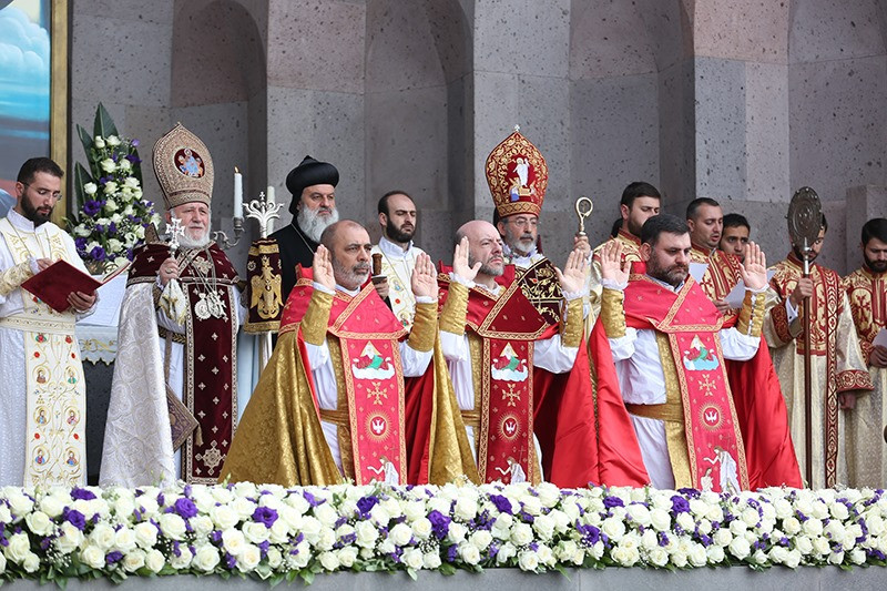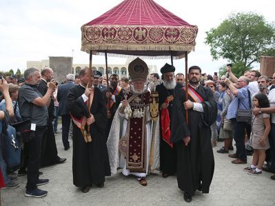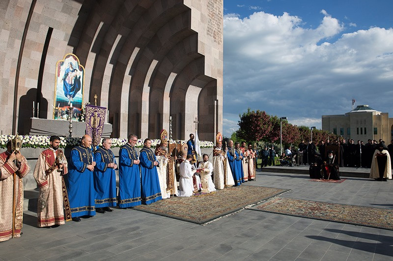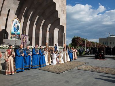 On May 12, the Divine Liturgy began with the solemn procession, which led His Holiness Karekin II and His Holiness Patriarch Mor Ignatius to the St. Trdat Open Altar, where the sacred service began.