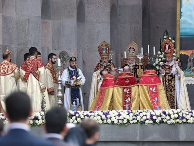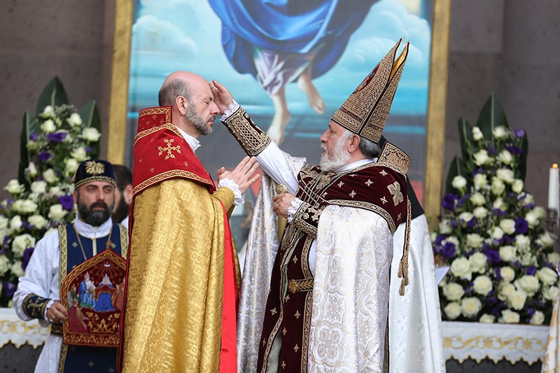 On May 12, Episcopal ordinations and consecrations were held in the Mother See of Holy Etchmiadzin. During the celebration of Divine Liturgy Rev. Fr. Serovbe Isakhanyan, Primate of the Armenian Diocese of Germany; Rev. Fr. Daniel Fntigyan, Primate of the Eastern Diocese of the Armenian Church of North America; and Rev. Fr. Tiran Petrosyan, Pontifical Delegate of Central Europe and Sweden were consecrated, ordained and elevated in rank, by His Holiness Karekin II, Supreme Patriarch and Catholicos of All Armenians.