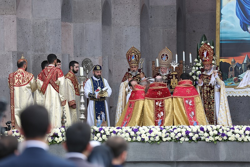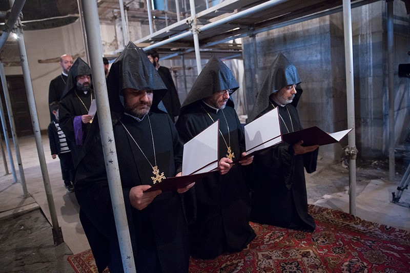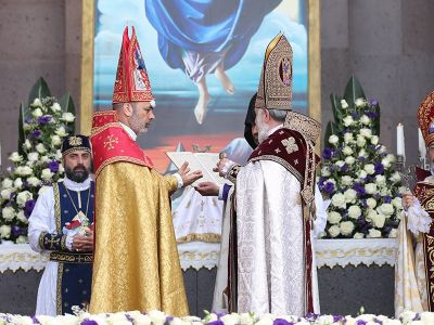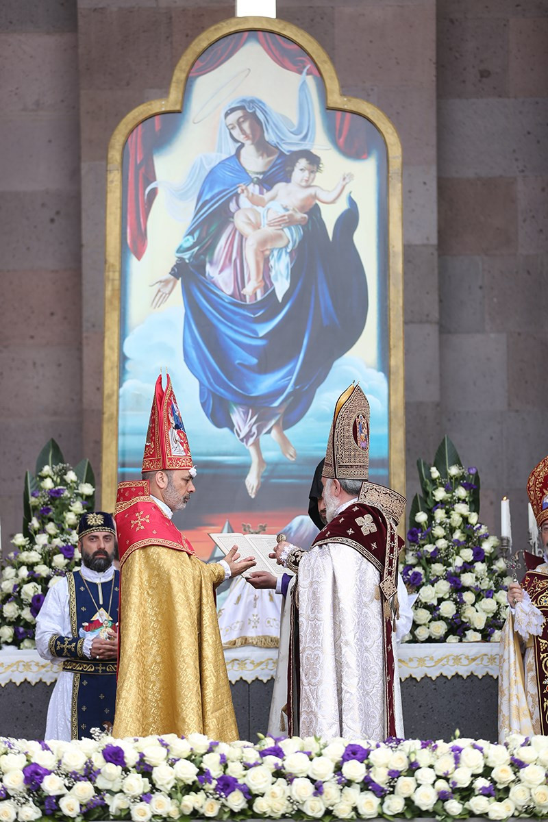 The previous day, before the Evening Service, the service of candidature was held in the St. Trdat Open Altar, during which the bishops reaffirmed their covenant faithfulness to the Armenian Apostolic Holy Church and Mother See of Holy Etchmiadzin, and signed their oaths.