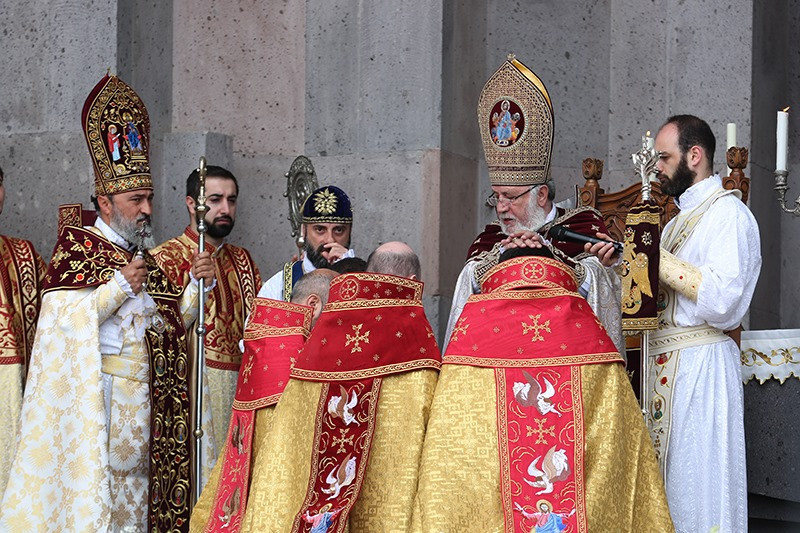 Through prayers to God we ask for the Lord's constant support. May the prayers of Apostles St. Thaddeus and Bartholomew, St. Gregory the Illuminator and all our holy fathers support you in your high mission. From the bottom of Our heart, we pray to Almighty God, that the Armenian Church; founded by the Apostles St. Thaddeus and St. Bartholomew and established by our Patriarch St. Gregory the Illuminator; which is the ark for the salvation of all Armenians, be kept bright by your courageous service. We also ask that our Lord supports you to proceed without offense on the path of service, to add new successes to your achievements in the annals of the Holy Church over the years, by the guidance of the Holy Spirit.