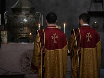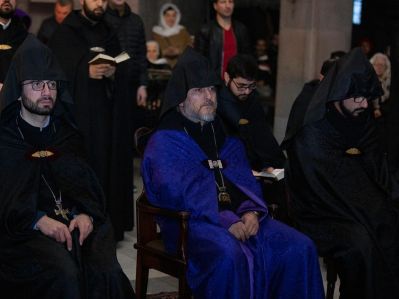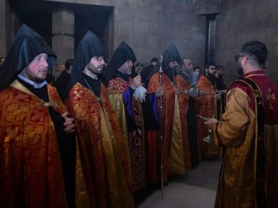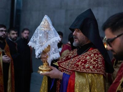 On December 02, at the conclusion of Evening Services, in St. John the Baptist and St. Vardan Chapel-baptistery of the Mother See of Holy Etchmiadzin, the Eve of the Feast of the Holy Apostles St. Thaddeus and St. Bartholomew was held, during which the relics of the Holy Apostles were brought out.