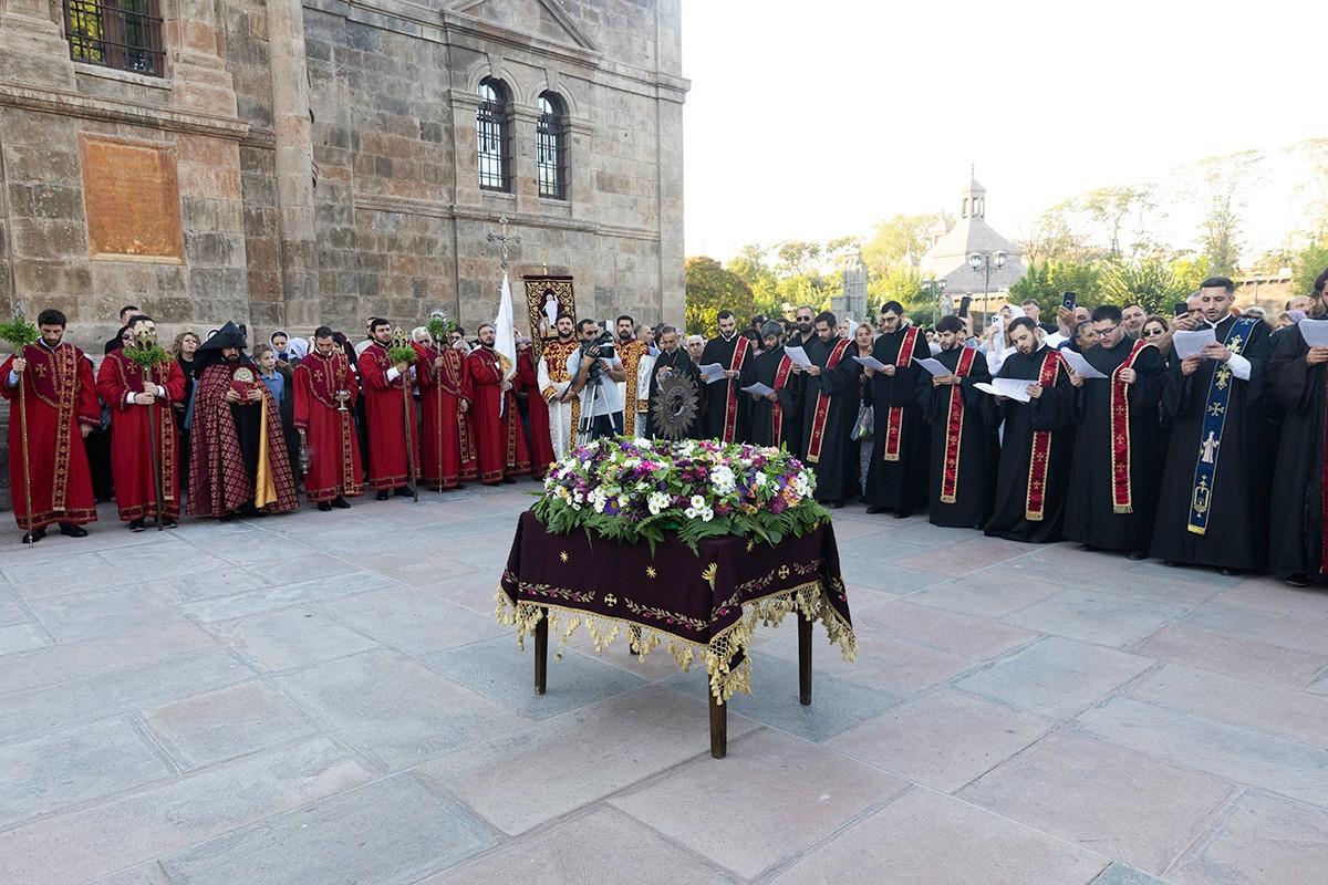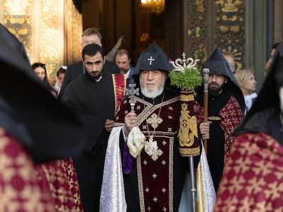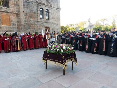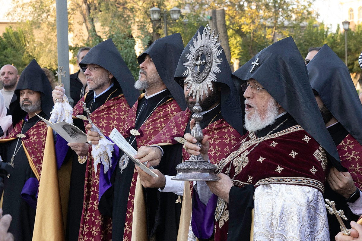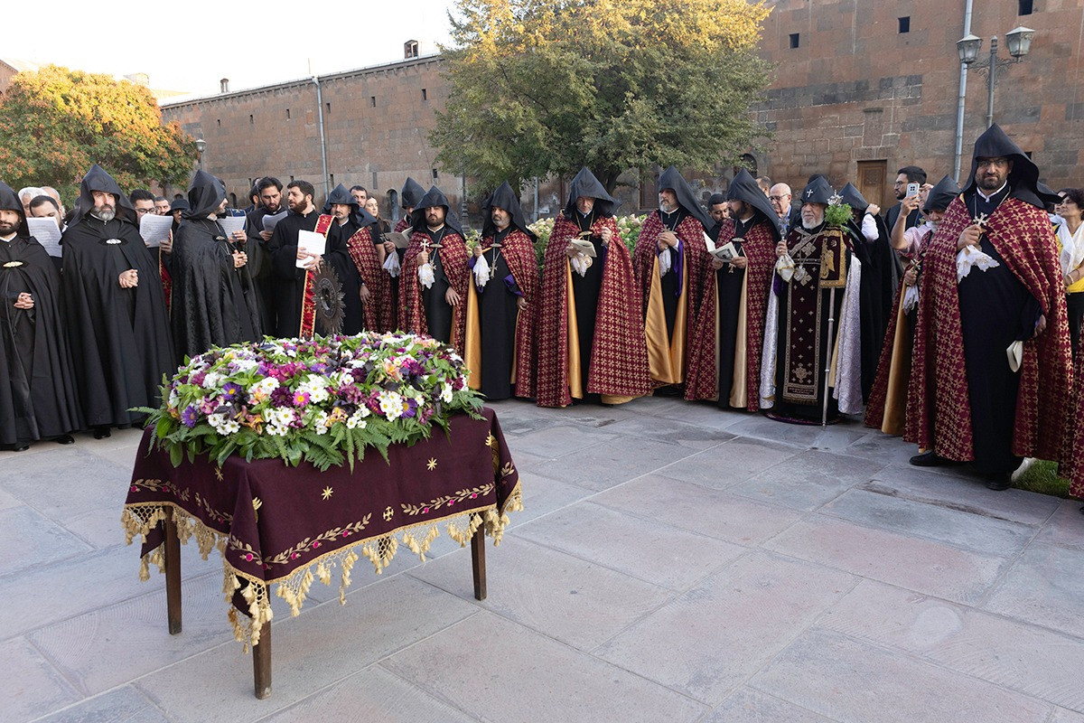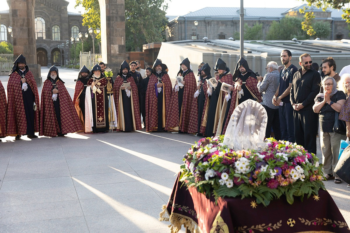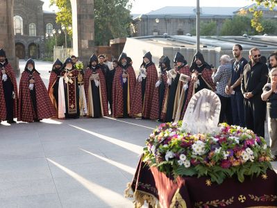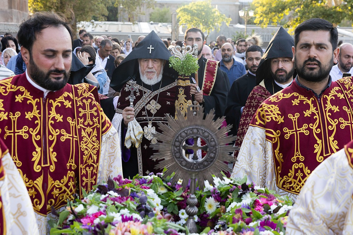 On September 14, on the Feast of the Exaltation of the Holy Cross, under the leadership of His Holiness Karekin II, Supreme Patriarch and Catholicos of All Armenians, an Evening Prayer and a solemn procession tоок place at the Mother Cathedral. On this occasion, for the veneration and consolation of the faithful, the relic of the Lord’s Holy Cross was brought out from the reliquary.