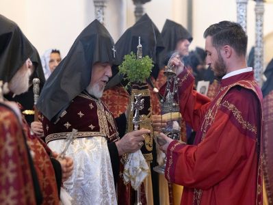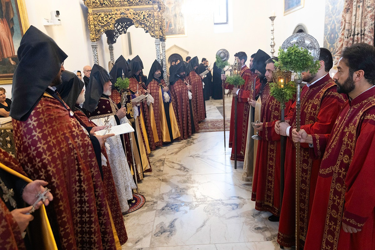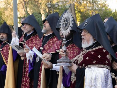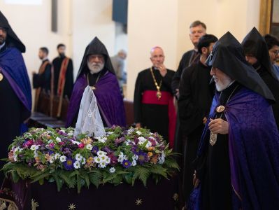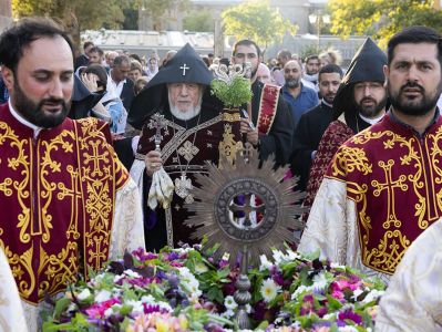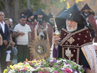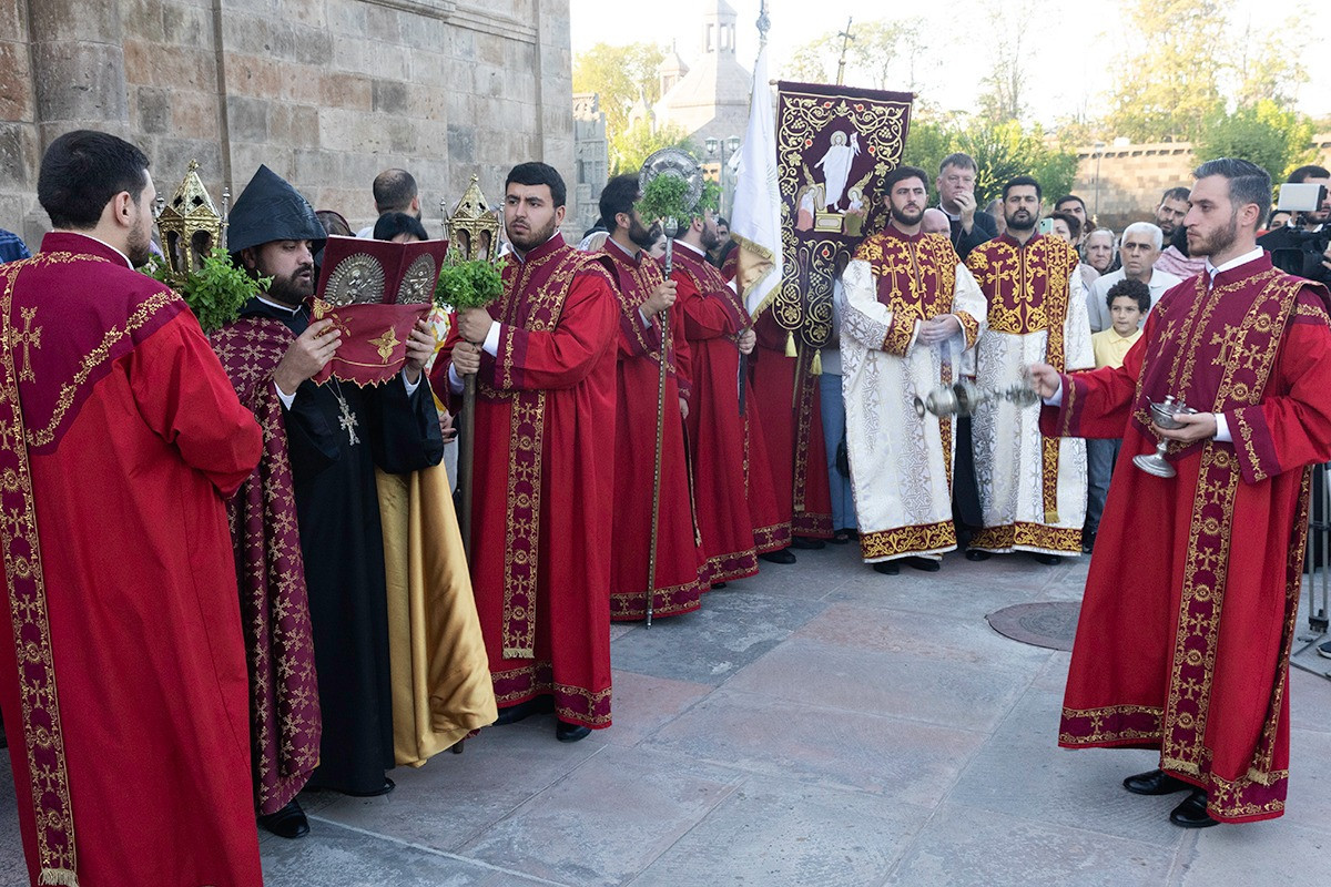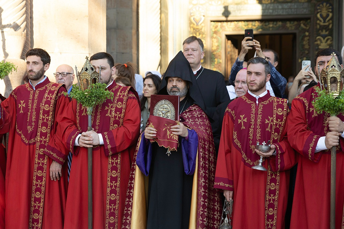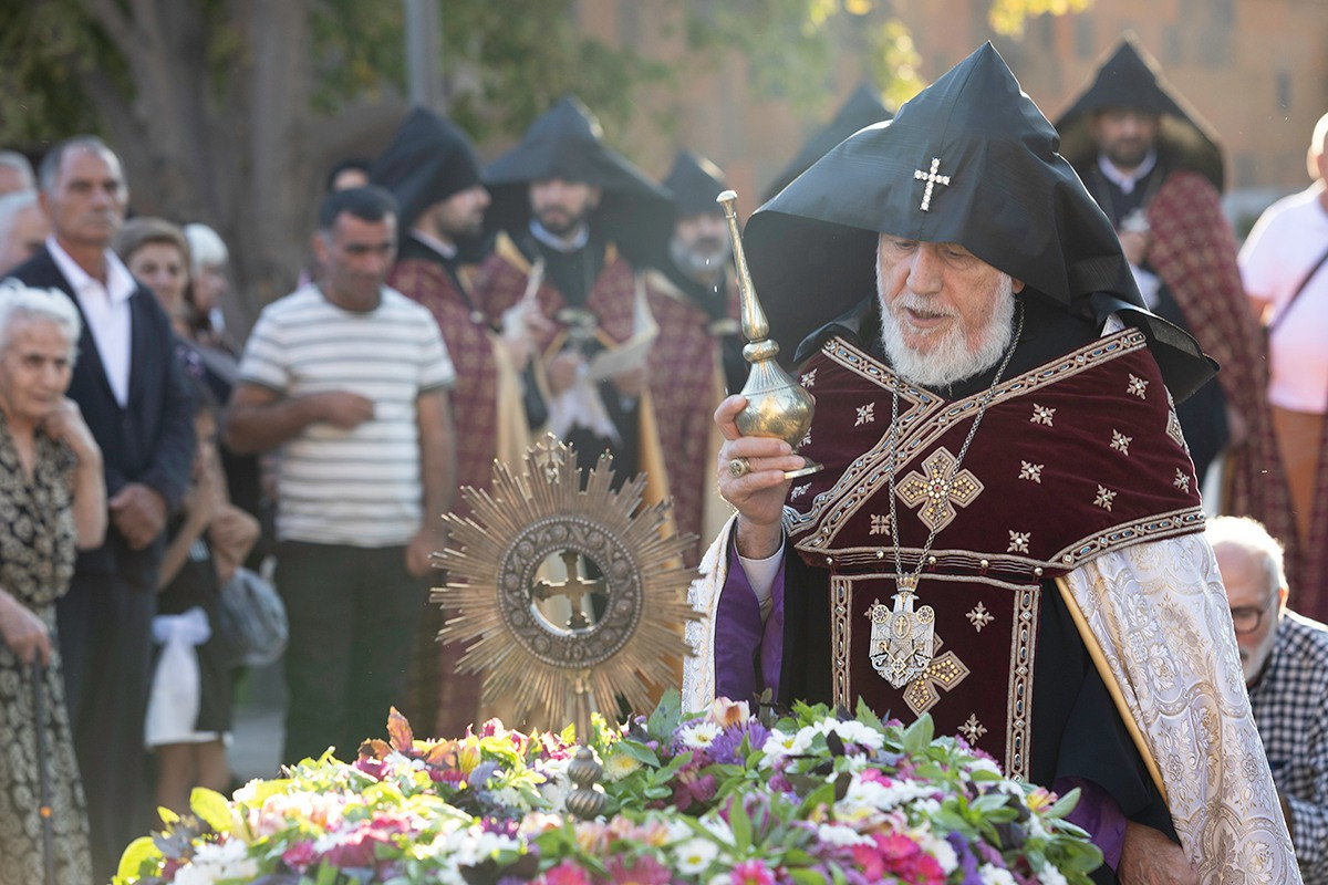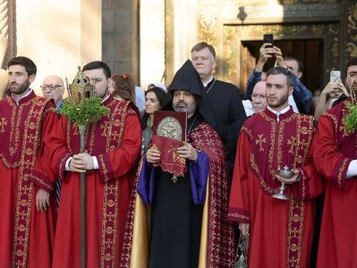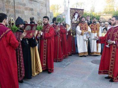On September 14, on the Feast of the Exaltation of the Holy Cross, under the leadership of His Holiness Karekin II, Supreme Patriarch and Catholicos of All Armenians, an Evening Prayer and a solemn procession tоок place at the Mother Cathedral. On this occasion, for the veneration and consolation of the faithful, the relic of the Lord’s Holy Cross was brought out from the reliquary.
