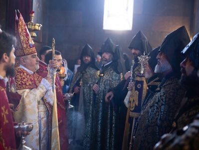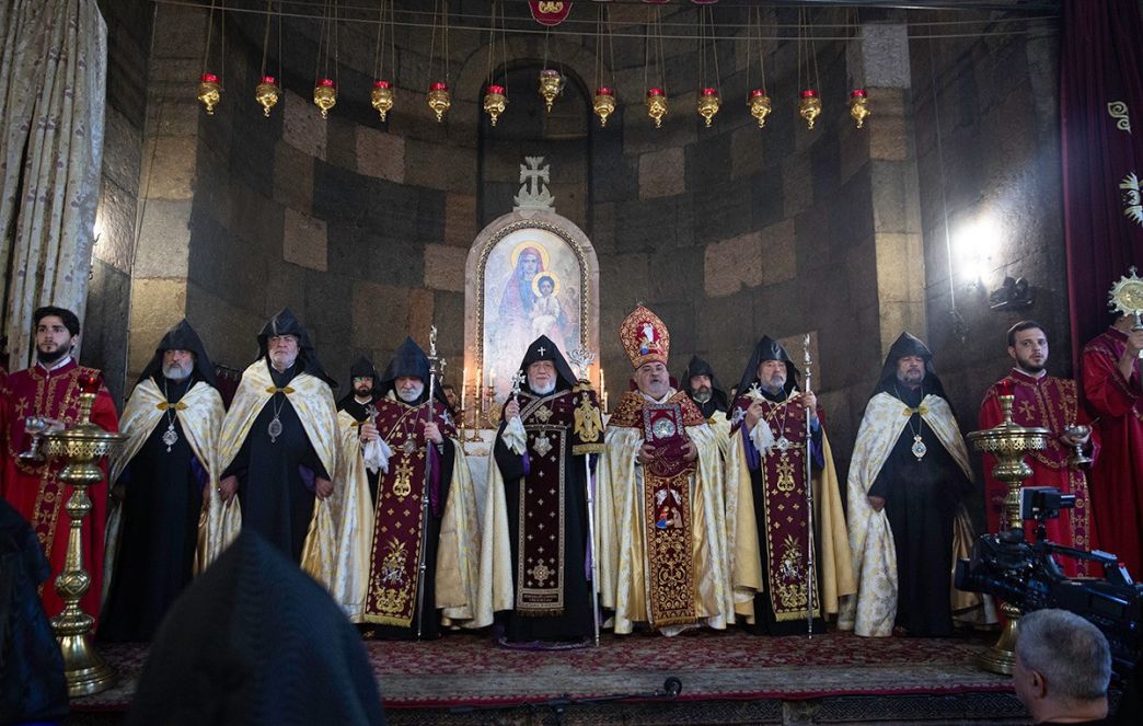 During the Divine Liturgy, a Patriarchal prayer was fulfilled under the chairmanship of the Armenian Patriarch, during which the spiritual class and the attending faithful people offered a prayer to God for the steadfastness, brightness and building of the Mother See of Holy Etchmiadzin and the Patriarchate of All Armenians.