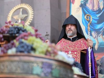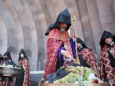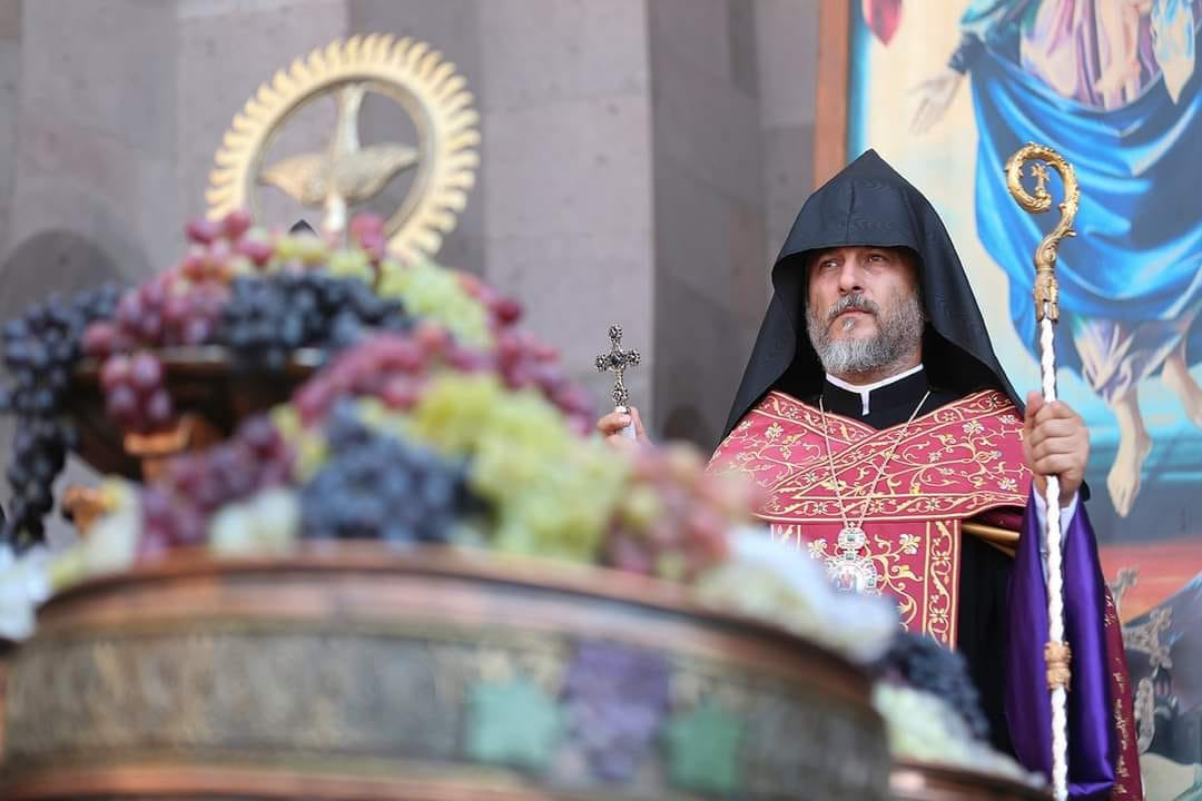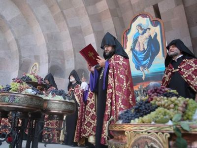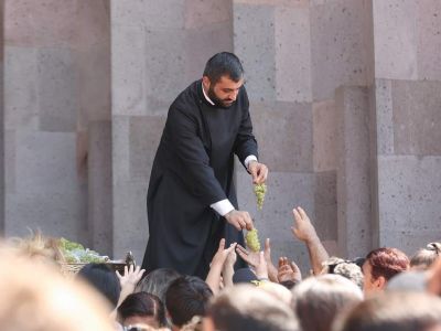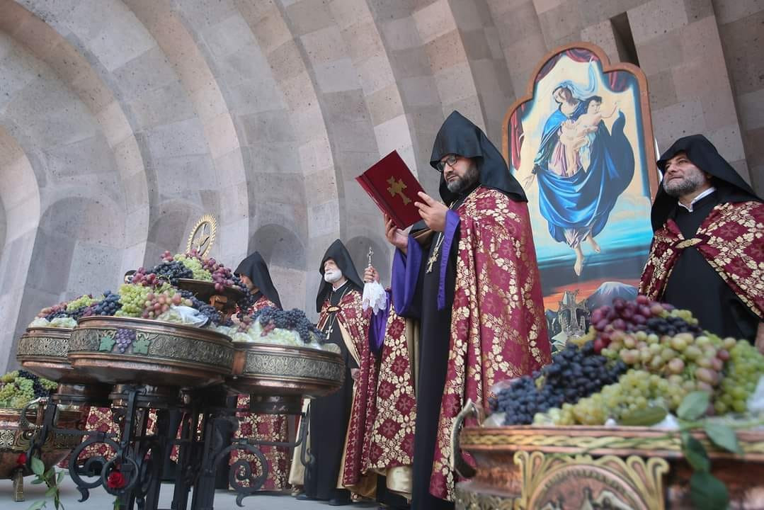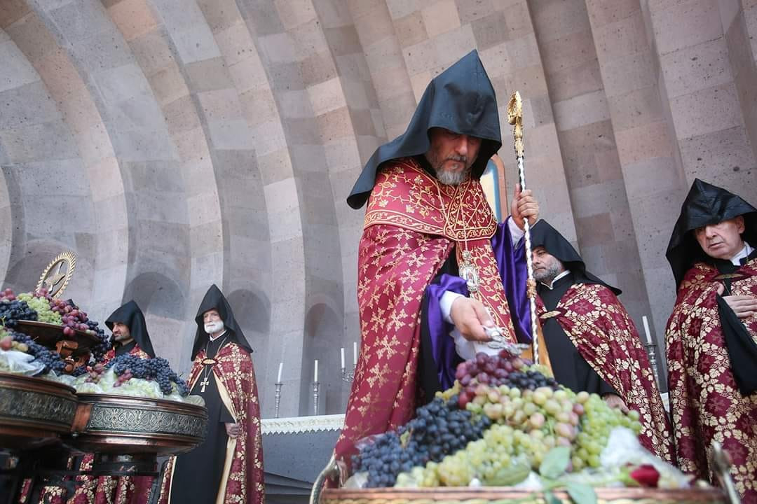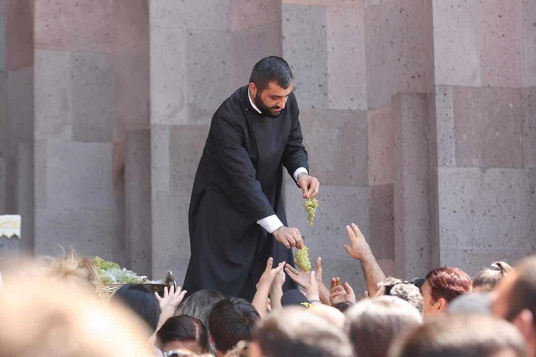 Following the Divine Liturgy, under the presidency of His Grace Bishop Moushegh Babayan, Grand Sacristan of the Mother See; the Service for the Blessing of the Grapes was offered at the St. Trdat Open Air Altar of the Mother See. At the conclusion of the Service, the blessed grapes were distributed to the faithful.