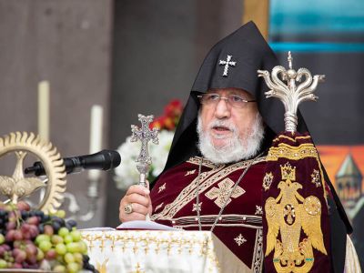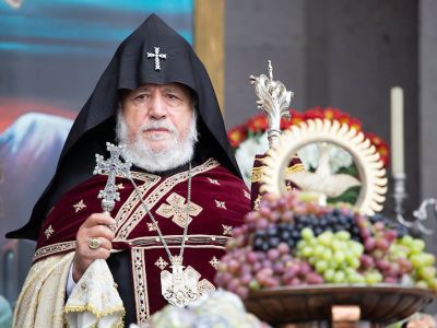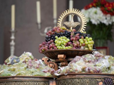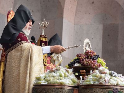 Following the Divine Liturgy, under the Presidency of His Holiness Karekin II, the Pontiff of All Armenians; a Service of Blessing of the Grapes was offered at the St. Trdat Open Air Altar of the Mother See.