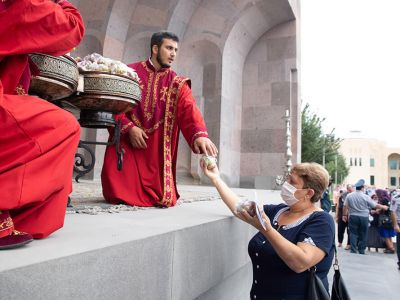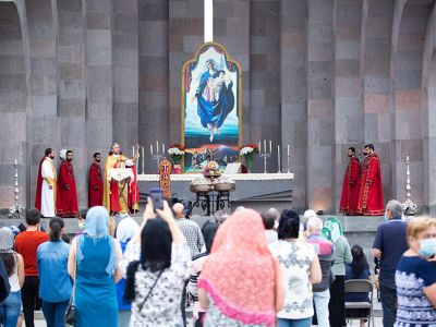 On August 16, the Armenian Apostolic Holy Church celebrated the Feast of the Assumption of the Holy Mother of God. On this joyful occasion, a Divine Liturgy was celebrated at the St. Trdat Open Air Altar of the Mother See of Holy Etchmiadzin. The Celebrant was His Grace Bishop Mushegh Babayan, Director of Operations Department of the Mother See of Holy Etchmiadzin.