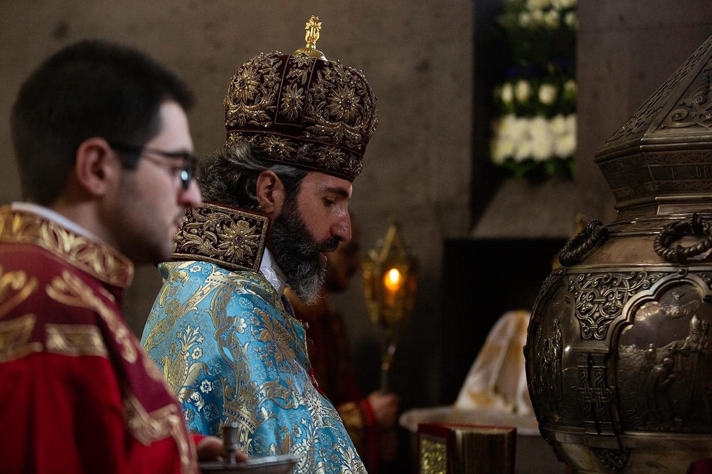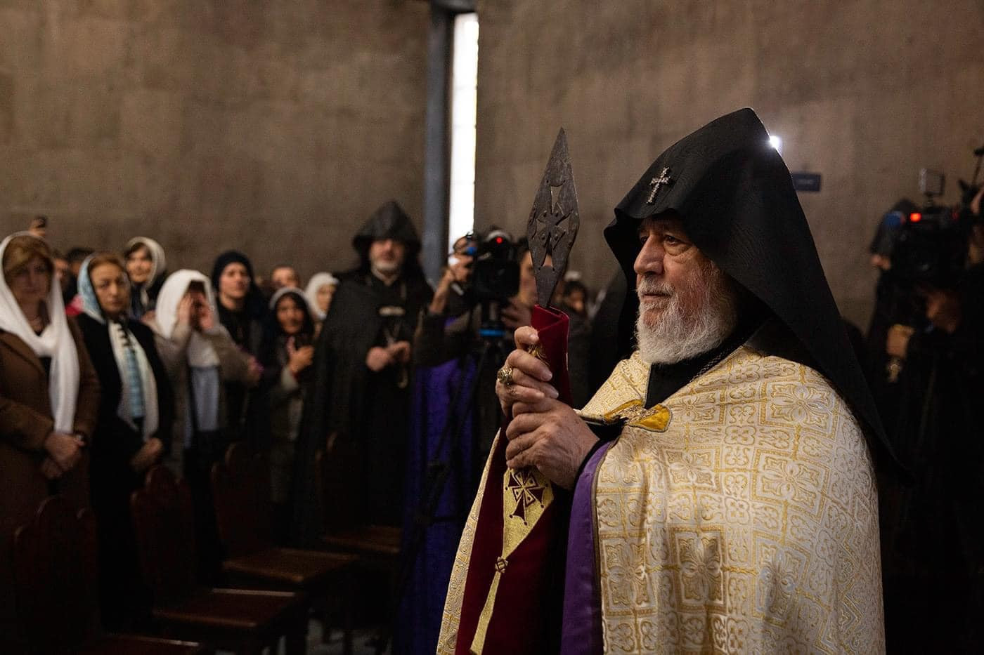 At the conclusion of the Divine Liturgy, the Armenian Patriarch blessed the faithful with the “Protector” prayer and the Holy Lance ‘Geghard’, afterwards the faithful were granted the opportunity to kiss and worship the miraculous Holy Lance ‘Geghard’.