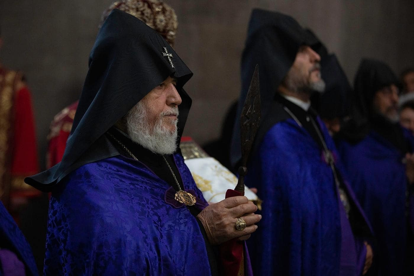 During the Divine Liturgy, His Holiness Karekin II, Supreme Patriarch and Catholicos of All Armenians; led by the ecclesiastical solemn procession, brought the Holy Lance ‘Geghard’ to St. John the Baptist and St. Vardan Chapel-baptistery.