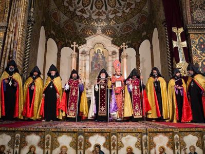 In attendance for the Divine Liturgy were Primates of the Armenian Dioceses; bishops officiating in various institutions of the Armenian Church; members of the Brotherhood of the Mother See; as well as Armenian Church benefactors Mr. and Mrs. Bedros and Anna Oruncakciel (California, USA), and many pilgrims from different communities in the Diaspora and Armenia.