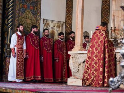 Under the presidency of His Holiness Karekin II, Supreme Patriarch and Catholicos of All Armenians; Divine Liturgy was offered in the Mother Cathedral. The Celebrant was His Grace Bishop Moushegh Babayan, Director of the Administrative Department of Mother See.