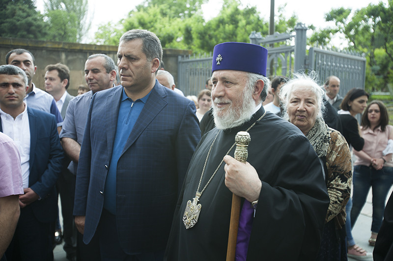 In his sermon, Bishop Bagrat reflected on the role of savior assumed by the Mother See over the centuries, as well as caregiver of the orphans and refugees who escaped the massacres during the Armenian Genocide. He noted the important mission of gathering and caring for orphans which was undertaken by the AGBU during those years. “Today in the courtyard of the Mother Cathedral are not the overlooked orphans, and the people who bear the sword of Genocide on their backs; but the representatives of political and secular authorities, military leaders, citizens of the Tavoush region and as well as Armenians who have made great contributions to the strengthening of the Homeland; and those from varied cultural,and educational sectors have come here: to be join in the prayers of the Catholicos of All Armenians”, stated the celebrant priest.
