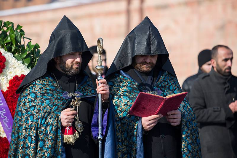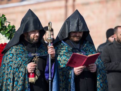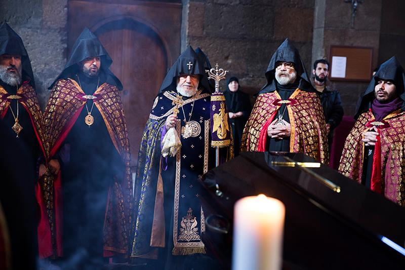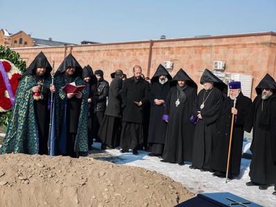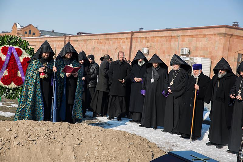 On January 30, the funeral rites for His Eminence Archbishop Mesrob Krikorian was held in the cemetery of the Brotherhood of Holy Etchmiadzin located at the Mother See. Under the presidency of His Holiness Karekin II, Supreme Patriarch and Catholicos of All Armenians; the body of Archbishop Mesrob was placed in the St. Gayane Monastery where he received the last anointment. On this sorrowful occasion, His Holiness reflected on the character and devoted service of Archbishop Mesrob.