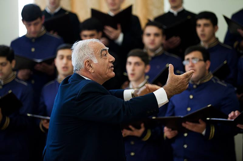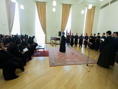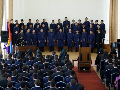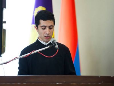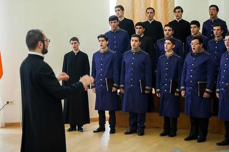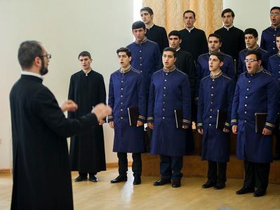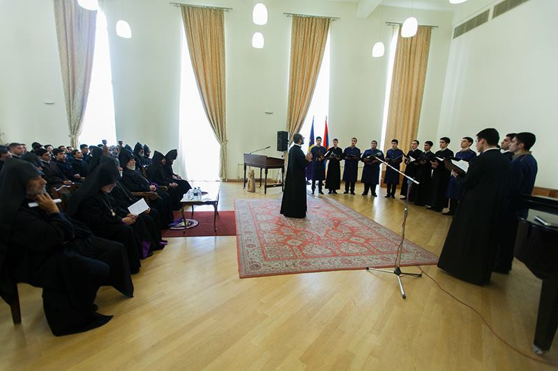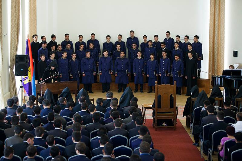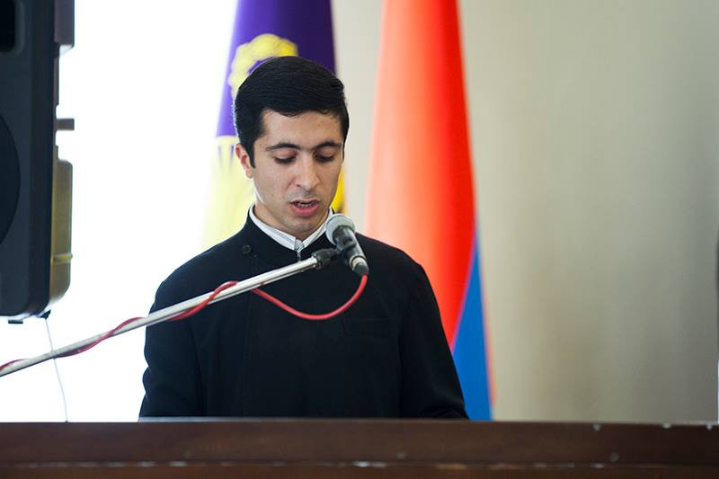 The Gevorkian Theological Seminary choir, under the leadership of the Republic of Armenia Distinguished Artist Harutyun Topikyan; and the Etchmiadzin Choir, under the leadership of Deacon Artur Vardanyan; performed spiritual and national songs. Dn. Manavazd Mkrtchyan, a graduate student of the 6th class gave remarks on behalf of the students and Tovmas Arakelyan (1st class) recited the poem "We are few, but we are Armenians" by Paruyr Sevak.