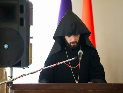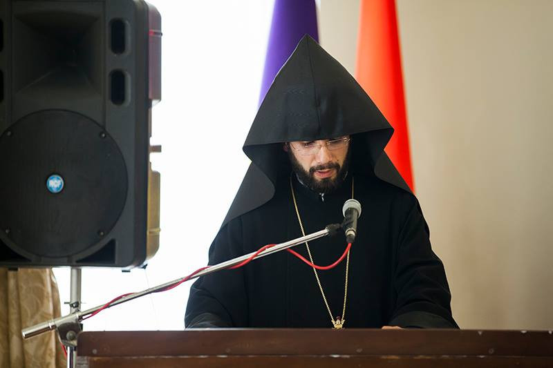 Following the Lord's Prayer and the singing of the Gevorkian Theological Seminary hymn, Rev. Fr. Karekin Hambardzumyan, Dean of the Gevorkian Theological Seminary gave his remarks.