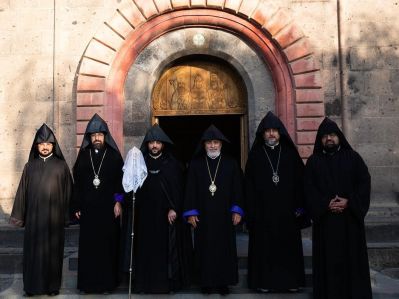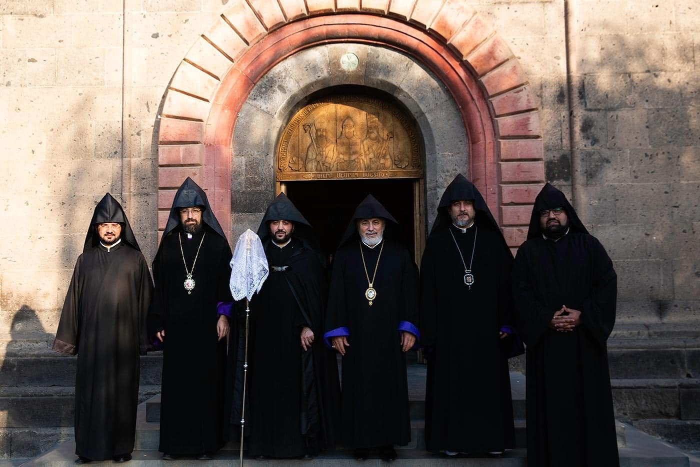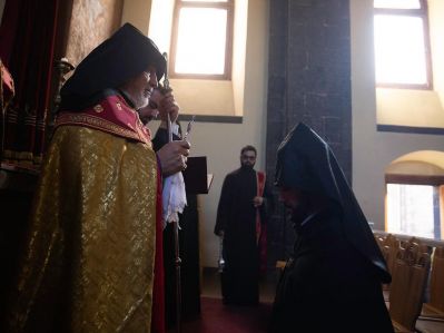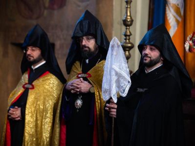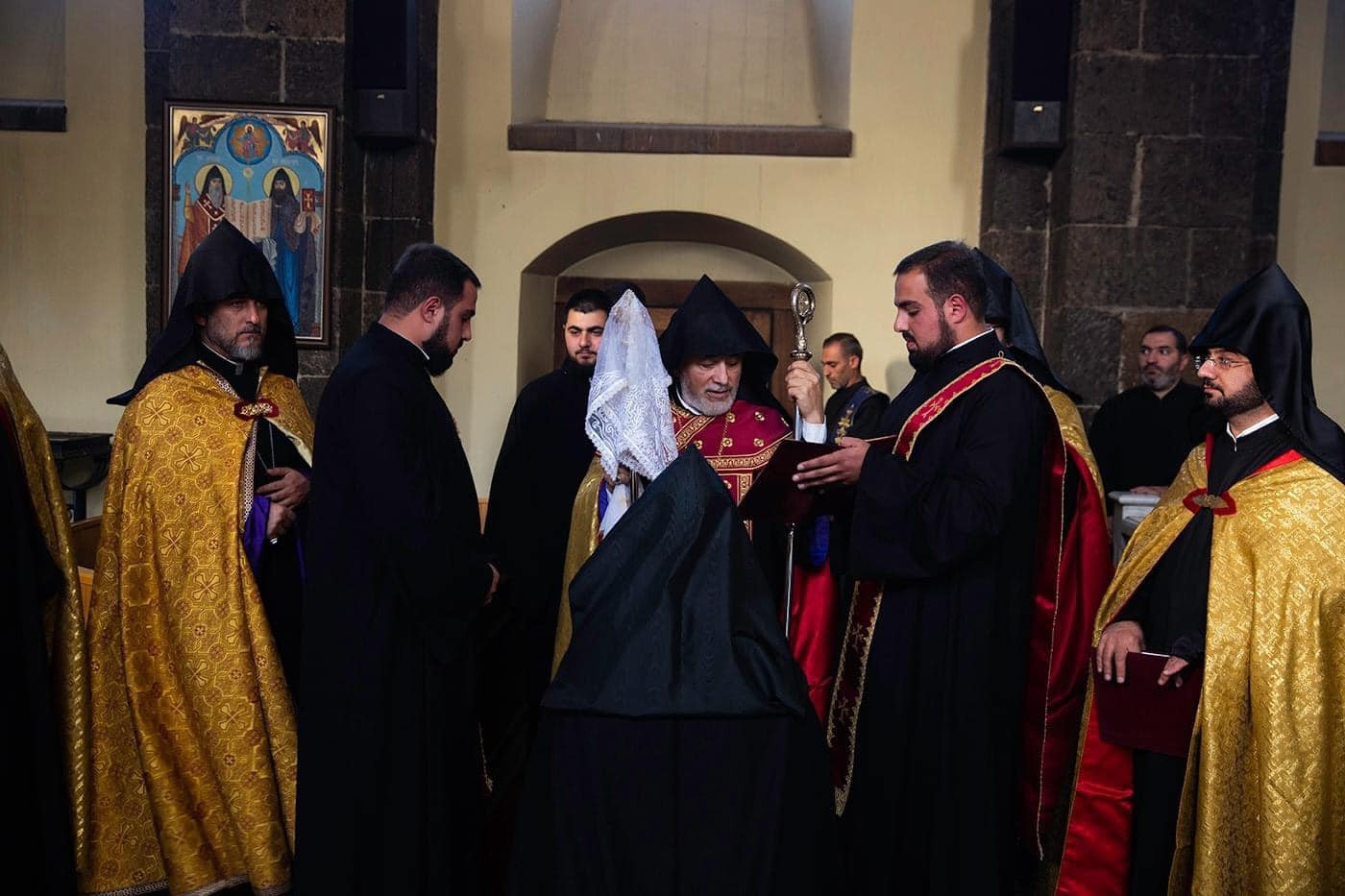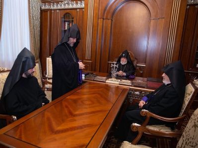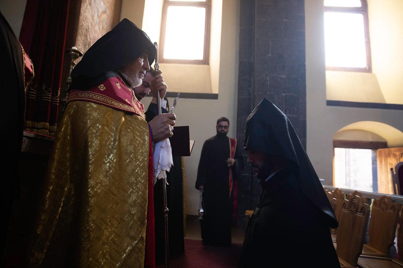 On the same day, the Catholicos of All Armenians received the newly ordained Archimandrite. At the meeting, the Grand Sacristan of the Mother See, His Grace Bishop Moushegh Babayan, asking for the Pontifical blessings of His Holiness, presented the Archimandrite who was awarded the doctrinal rank.