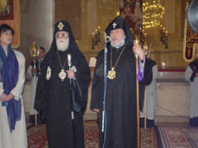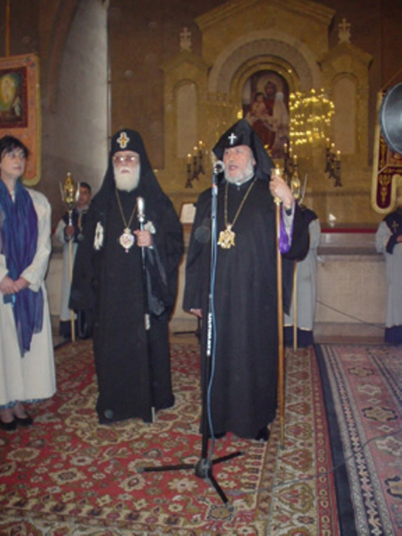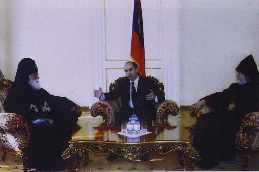 In the evening of May 7, His Holiness Ilia II, Catholicos-Patriarch of All Georgia, and His Holiness Karekin II, Supreme Patriarch and Catholicos of All Armenians, visited with the President of the Republic of Armenia, Mr. Robert Kocharian.