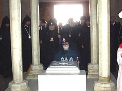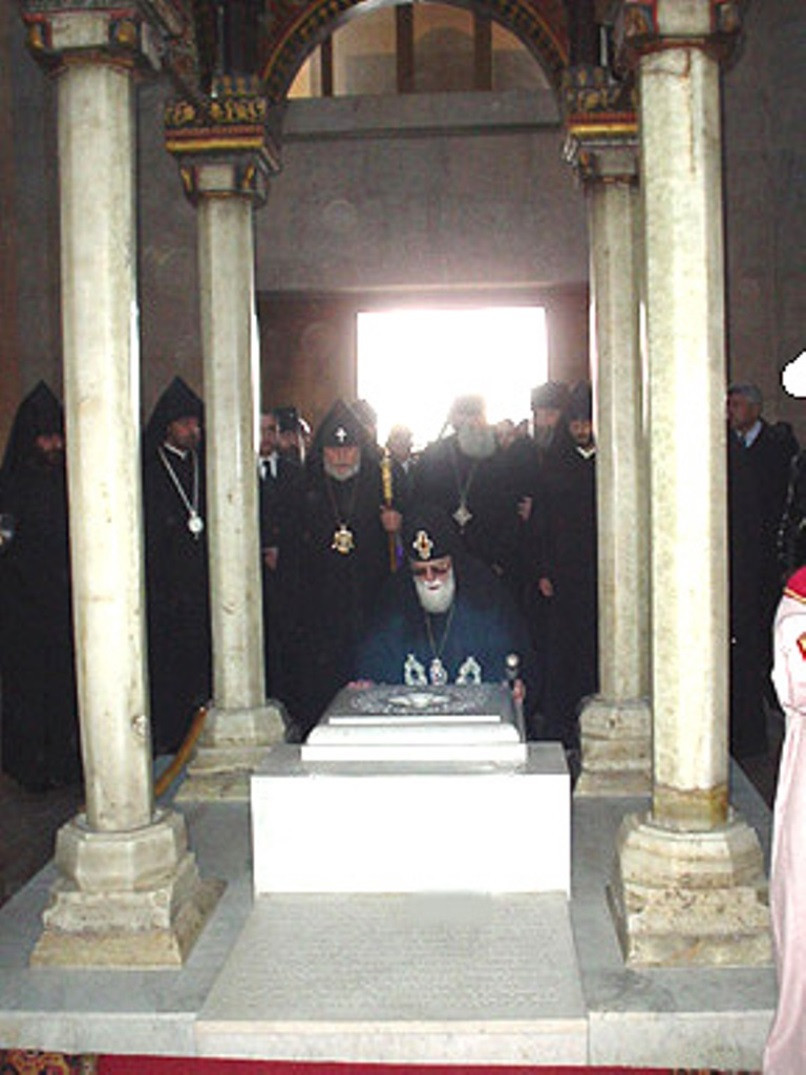 Following their meeting with the President, the two Pontiffs visited Yerevan's Mother Cathedral of St. Gregory the Illuminator, where His Holiness Ilia II paid homage before the relics of the patron saint of the Armenian Church, Saint Gregory.