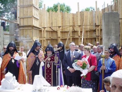 In the early morning of June 23, His Holiness Karekin II, Supreme Patriarch and Catholicos of All Armenians, departed for the city of Vanadzor, the headquarters of the Diocese of Gougark. He went to conduct the service of the Blessing of the Foundation for the new cathedral for the Diocese, being built in the center of the city. The groundbreaking service for the new cathedral occurred in May of 2002.