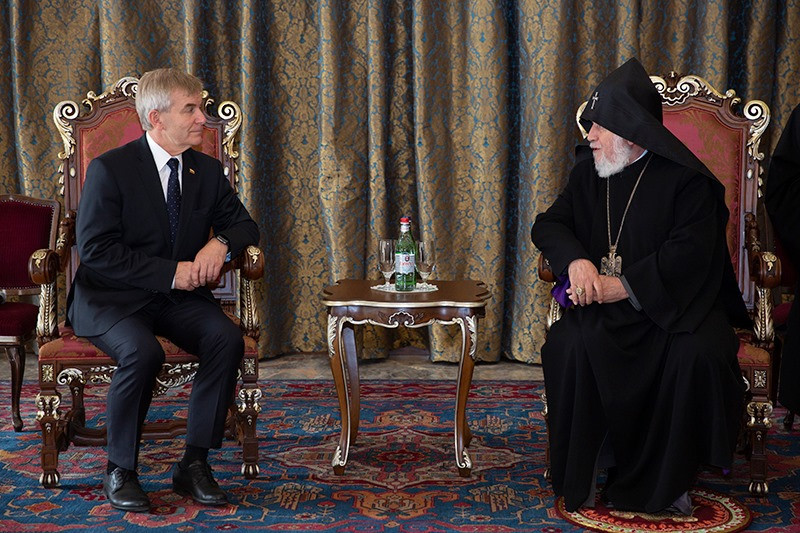 The Pontiff of All Armenians confirmed with gratitude that Armenia and Lithuania have always had friendly relations recalling the Lithuanians' support to the Armenian people on the days of the Armenia Declaration of Independence and the beginning of the Nagorno-Karabagh War. His Holiness reflected on the Christian faith and its significant role in overcoming the hardships throughout the Armenian history, in particular, speaking about the mission of the Armenian Apostolic Church. During the conversation, the Pontiff of All Armenians expressed His appreciation to the Lithuanian authorities on the recognition and condemnation of the Armenian Genocide highlighting that it is not only from the perspective of the justice re-establishment for the Armenian people but also the preventing of such crimes in humans' life.In his turn, the President of the Lithuanian Parliament touched upon the mission of the delegation and the need formore productive bilateral relationship reaffirming Lithuania's readiness to assist Armenia in various issues with its great experience. Mr. Viktoras Pranckietis also presented to the Catholicos of All Armenians the religious full piture of the Republic of Lithuania, spoke about its value system.