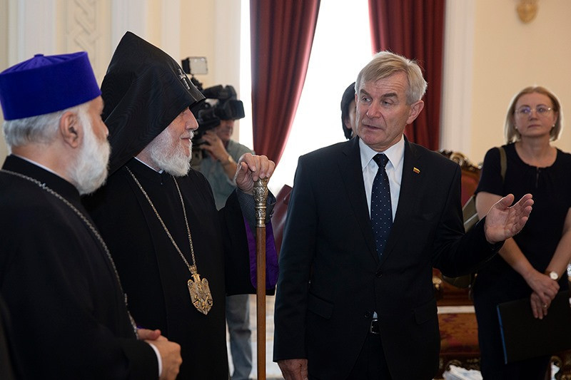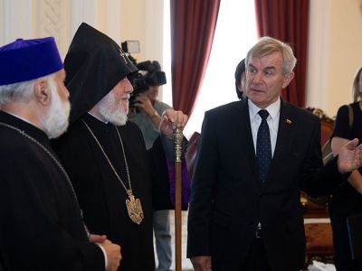 At the meeting, the Catholicos of All Armenians and the Speaker of the Seimas of Lithuania also referred to the issues concerning to the two countries and the peoples, the need of re-establishment of the peace and the stability in the region and the steps being initiated towards the peaceful settlement of the Nagorno-Karabagh conflict in this context. His Holiness also presented the peaceful efforts that the Armenian Church made on this issue.