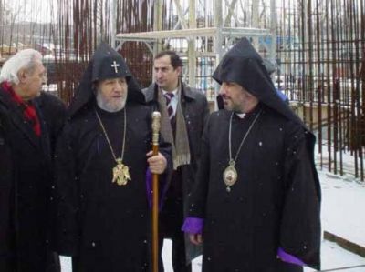 The same afternoon, the Pontiff of All Armenians visited the Armenian Church of the Holy Cross, which is presently under construction in the center of Moscow. His Holiness toured the construction site and reviewed the progress being made.