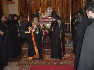 At the end of the service, the two Pontiffs were led by procession to the Residence of the Catholicos, where His Holiness the Catholicos introduced the delegation from the Coptic Orthodox Church to the bishops, diocesan primates, and members of the Supreme Spiritual Council of the Armenian Church.