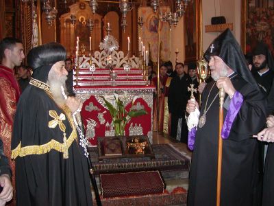 His Holiness Shenouda III, thanked the Catholicos for inviting him to Armenia, and mentioned in his response, "Our two peoples and our two churches have shared a similar history. We honor your saints, and remember your martyrs, for they are treasures in heaven . . . We pray that we may all be one, that we work and act together, testify to the Kingdom of Heaven and our luminous faith."
