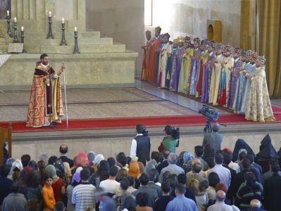 On the evening prior to the ordination, a public examination of the candidates? profession of faith was conducted in the Mother Cathedral of Yerevan. The sponsoring priests testified for the spiritual and religious training and virtues of the candidates. The candidates unanimously rejected and anathematized the heretics and schismatics and vowed to follow the true faith of Jesus Christ, the Apostles and the Armenian Patriarchs. As a sign of their orthodox faith, they recited the dogmatic creed of the Armenian Church, written by St. Gregory of Datev, and vowed to remain faithful to the hierarchy of the Armenian Church and the Mother See of Holy Etchmiadzin.