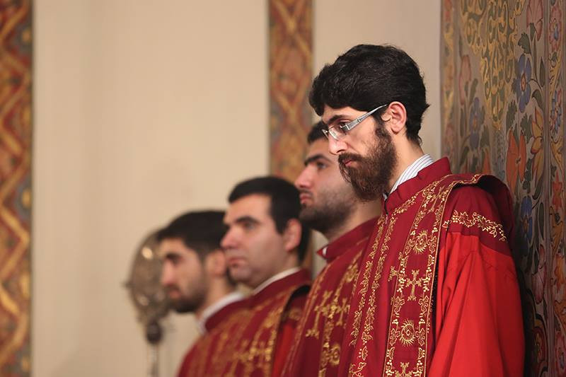 At the conclusion, on the occasion of the feast, Bishop Gevork, on behalf of the Brotherhood and staff of the Mother See and the faithful congratulated His Holiness and wished that God always keeps the staff of His Holiness ornate and rekindle the fire of the apostolic faith in the hearts of all Armenians, for the welfare and vibrancy of the Armenian Church and the Armenian nation.
