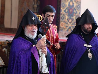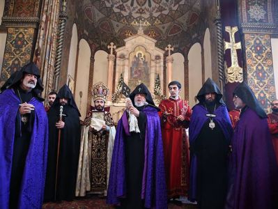 Introducing the preaching of the apostles and referring to the virtuous character of the first illuminators, Bishop Gevork added: “Dear Ones, St. Thaddeus and St. Bartholomew's testimony does not only have historical significance for us, in that it testifies the Apostolic origin of the Armenian Church, but it is more noted as the beginning of a spiritual event, which also marks the birth of the Christian spirit in human life. This spirit is best expressed through the pure protection of the knowledge that was bequeathed to the Armenian world by the two Apostles in the doctrine of Christ. The vivid manifestation is the numerous trials which had been overcome throughout history, which did not succeed in removing us from our Christian identity. And it is here that the spiritual-genetic line becomes visible, through which the Christian Armenian nation is directly connected to the mission of the founders of our faith. Next to other Christian people of the world, only do the Armenians so powerfully emphasize the source of their spiritual heritage. And we do not do this because of pride or to show that we are old, but we do this from spiritual responsibility in opposition to the enemies of the Armenian faith”.