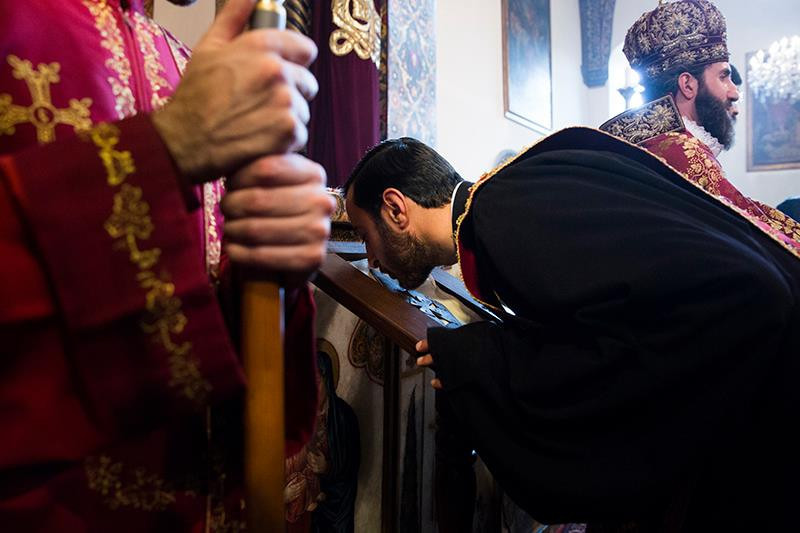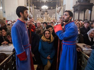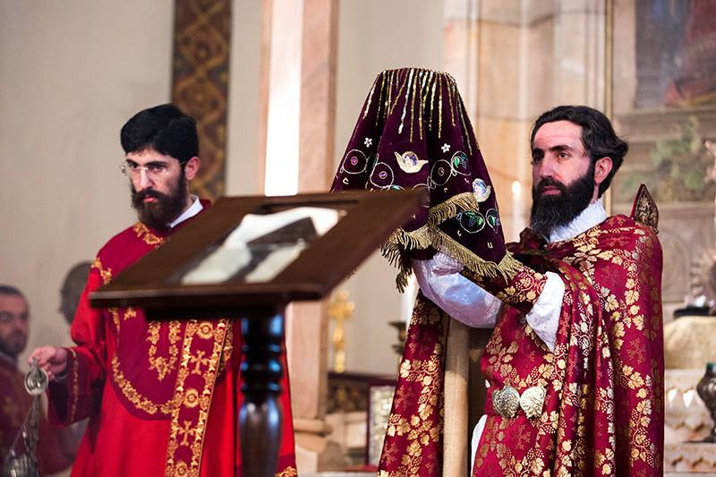 During the Divine Liturgy the Holy Lance (Geghard) was taken to the Mother Cathedral, so that the faithful had the opportunity to kiss it and receive blessings from the miraculous Holy Lance.