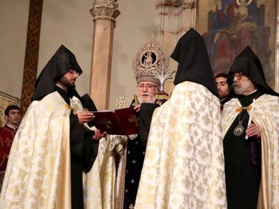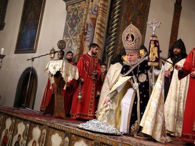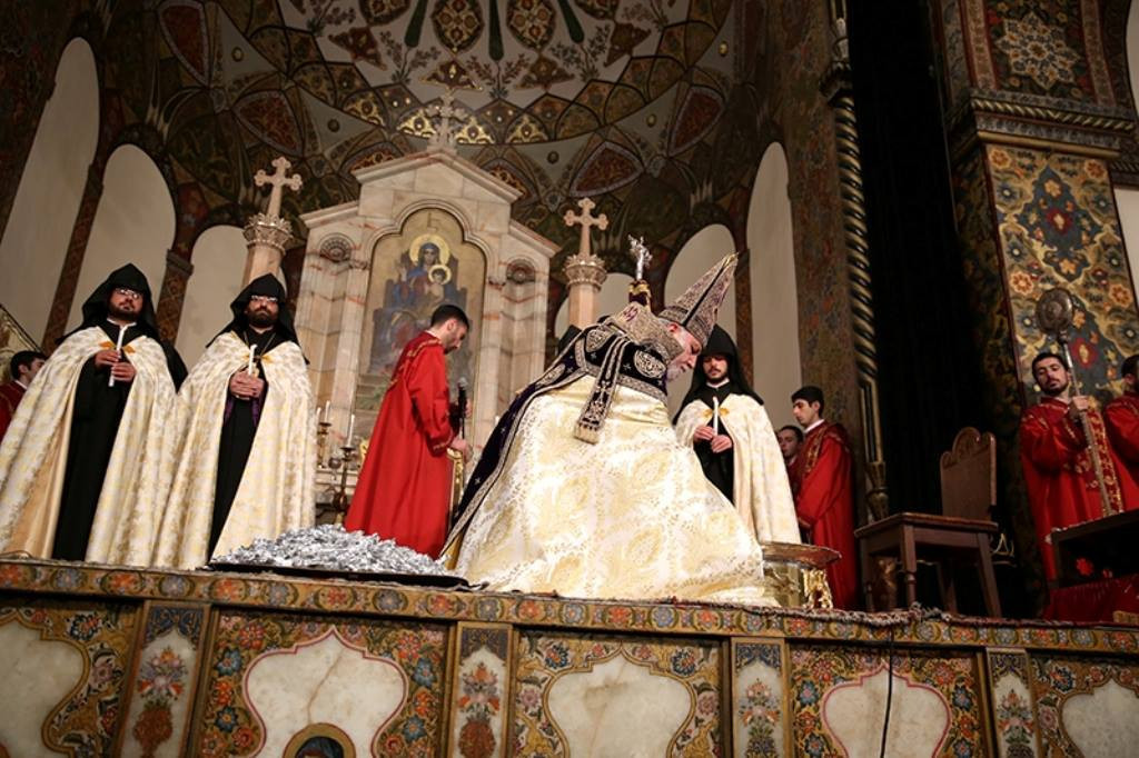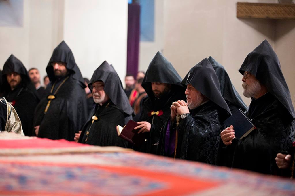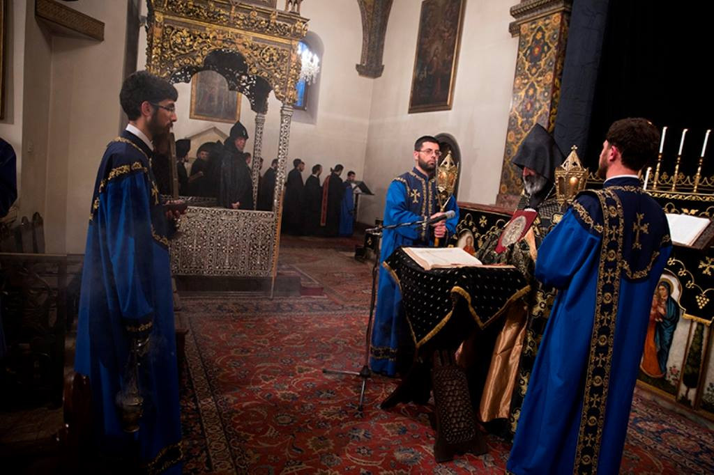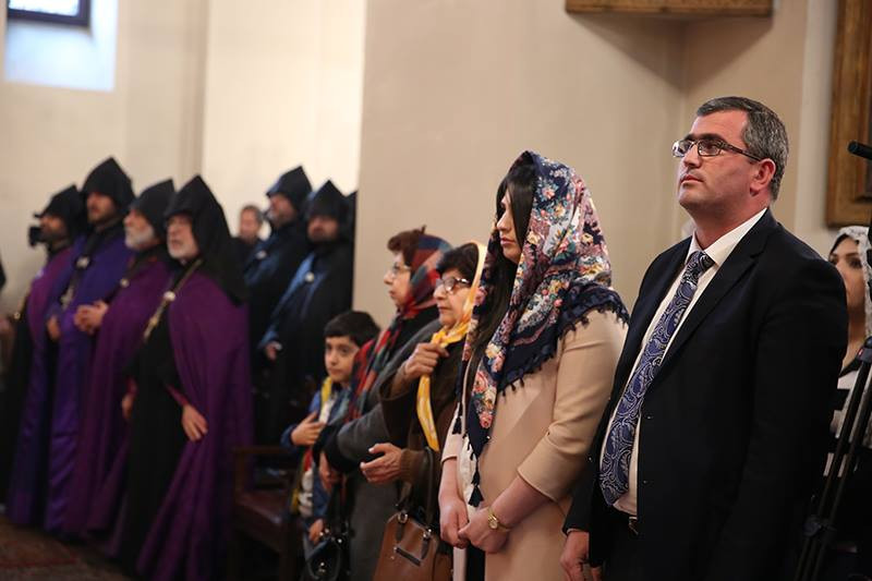 Late in the evening, under the presidency of His Holiness Karekin II, Supreme Patriarch and Catholicos of All Armenians; the Passion Service was held, which refers to the events of Good Friday.