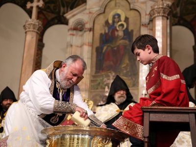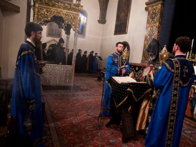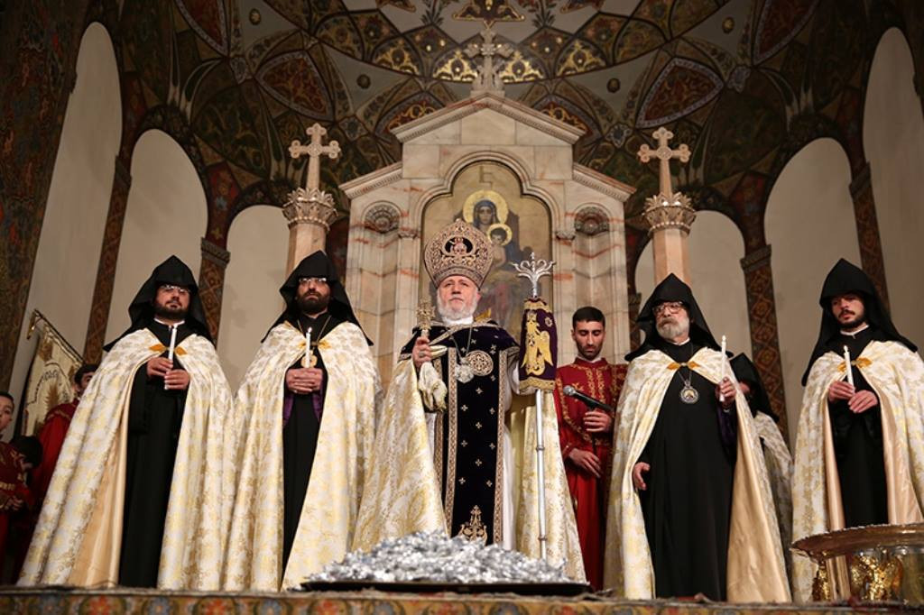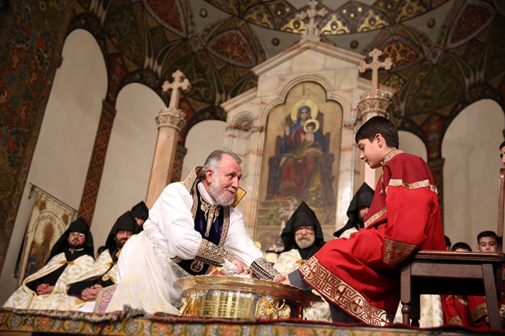 At midday, under the presidency of His Holiness Karekin II, Supreme Patriarch and Catholicos of All Armenians; the Service of Washing of the Feet was offered in the Mother Cathedral. During the Service, the members of the Brotherhood of the Mother See read Bible verses and the discipline of love by John of Yerznka, a prominent Archimandrite from the thirteenth century.