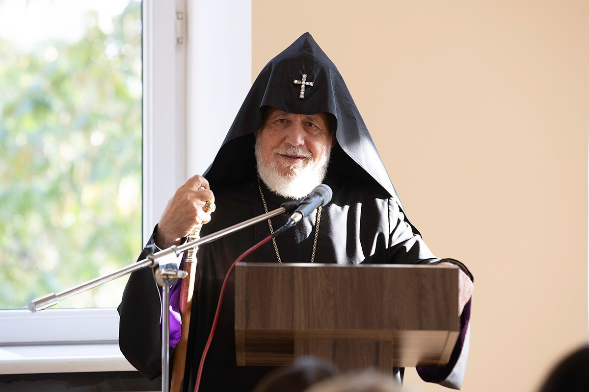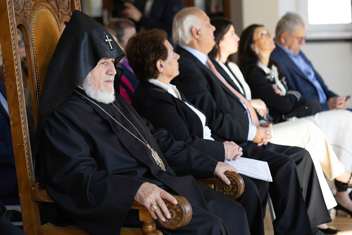 The ceremonial opening began with a prayer. On this occasion, His Holiness Karekin II awarded Mr. and Mrs. Hakob and Shamir Avagyan the highest honor of the Armenian Apostolic Church — the Order of Saint Gregory the Illuminator.