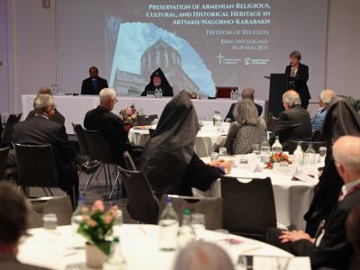 At the initiative of His Holiness Karekin II, Supreme Patriarch and Catholicos of All Armenians, an international conference titled “Religious Freedom: Preserving the Armenian Spiritual, Cultural, and Historical Heritage in Artsakh/Nagorno-Karabakh” is held in Bern, Switzerland, from May 26 to 28. The event was organized by the World Council of Churches (WCC) and the Protestant Church of Switzerland.