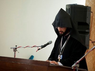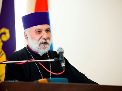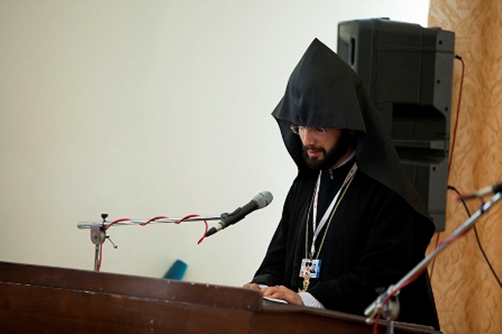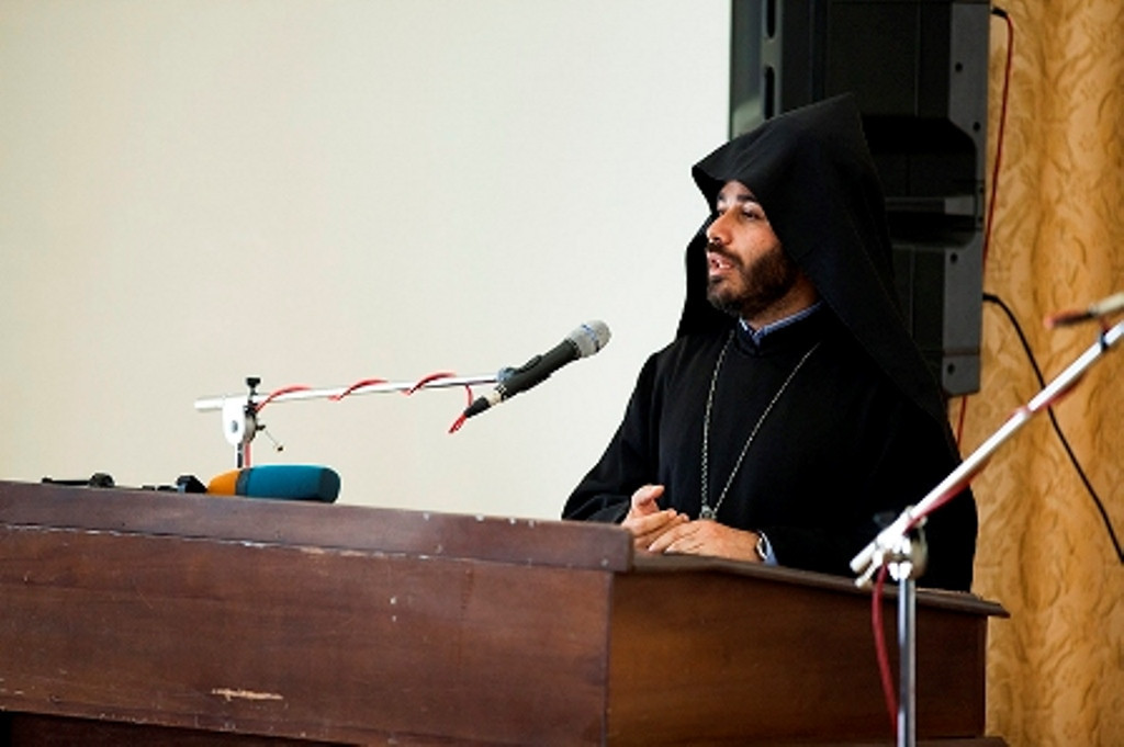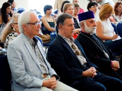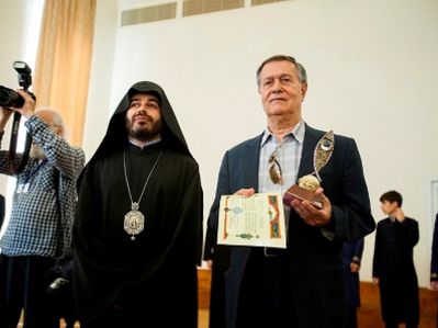 His Eminence Archbishop Nathan Hovhannisyan, Director of the External Relations and Protocol Department, in turn reflected on the life and activites of Mr. Balayan. Addressing the attendees and Mr. Balayan, Archbishop Nathan stated that it was a great honor for him to welcome everyone in the Mother See of Holy Etchmiadzin and share in the joy that the "Let There Be Light" award of the Armenian Apostolic Holy Church had found its next recipient. Speaking on the relationship between the Armenian Church and Mr. Balayan, Archbishop Nathan stated that the high moral light that emanates from his art, is already worthy of the prize.