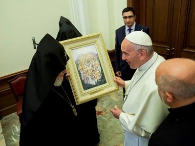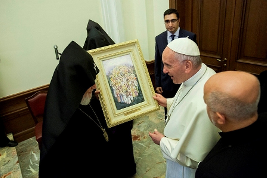 During the meeting, His Holiness Karekin II, welcomed Pope Francis to the Biblical land of Armenia and the Mother See of Holy Etchmiadzin. He also conveyed his fraternal love and best wishes to the members of the delegation.