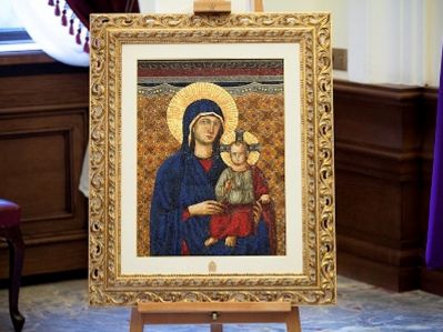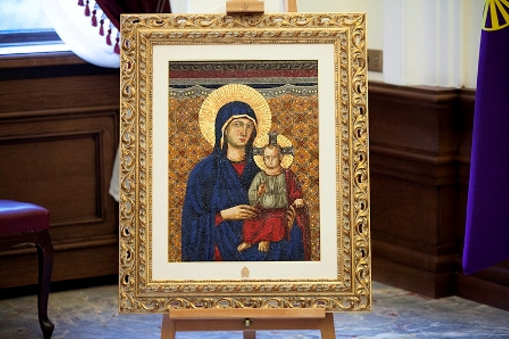 On the occasion of the visit, the Catholicos of All Armenians presented a Liturgical Chalice to Pope Francis, on which the St. Peter Basillica of the Vatican and the Mother Cathedral of Holy Etchmiadzin were engraved on the sides of the cup, as well as the holy apostles of the two churches. His Holiness also presented an icon of the Holy Martyr’s of the Armenian Genocide and a miniature sculpture of the Pope. In turn, the Pope gifted to His Holiness a mosaic of the Holy Mother of God.