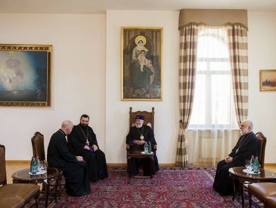 The meeting was attended His Eminence Archbishop Nathan Hovhannisyan, Director of the External Relations and Protocol Department of the Mother See and Very Rev. Fr. Shahe Ananyan, Director of the Ecumenical Relations Department of the Catholicosate of All Armenians.