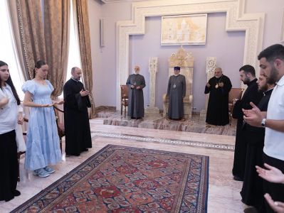 In conclusion, the Catholicos of All Armenians imparted his heartfelt wish that the Holy Right Hand of God remain over them in protection, urging the youth to maintain a steadfast bond with the Church and the homeland as a vital foundation for preserving their national and spiritual identity.