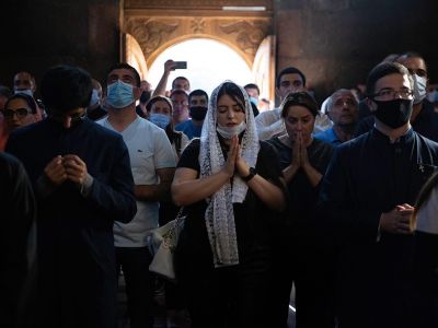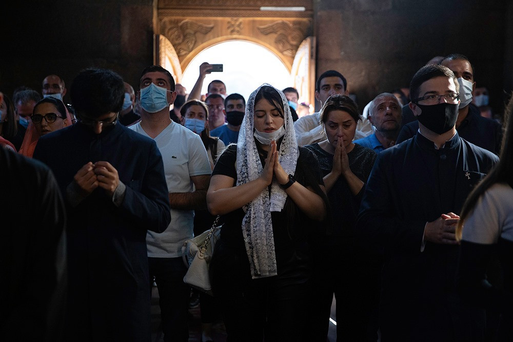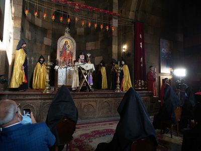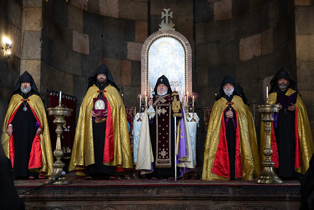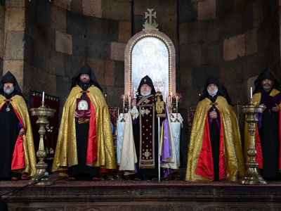 At the end of the Service His Holiness invited those present to pray together for the peace and security of the Homeland, for the victory of the Armenian army, for the safe life and well-being of our people, for the peace and tranquility of the souls of our heroic children who died defending the Homeland.