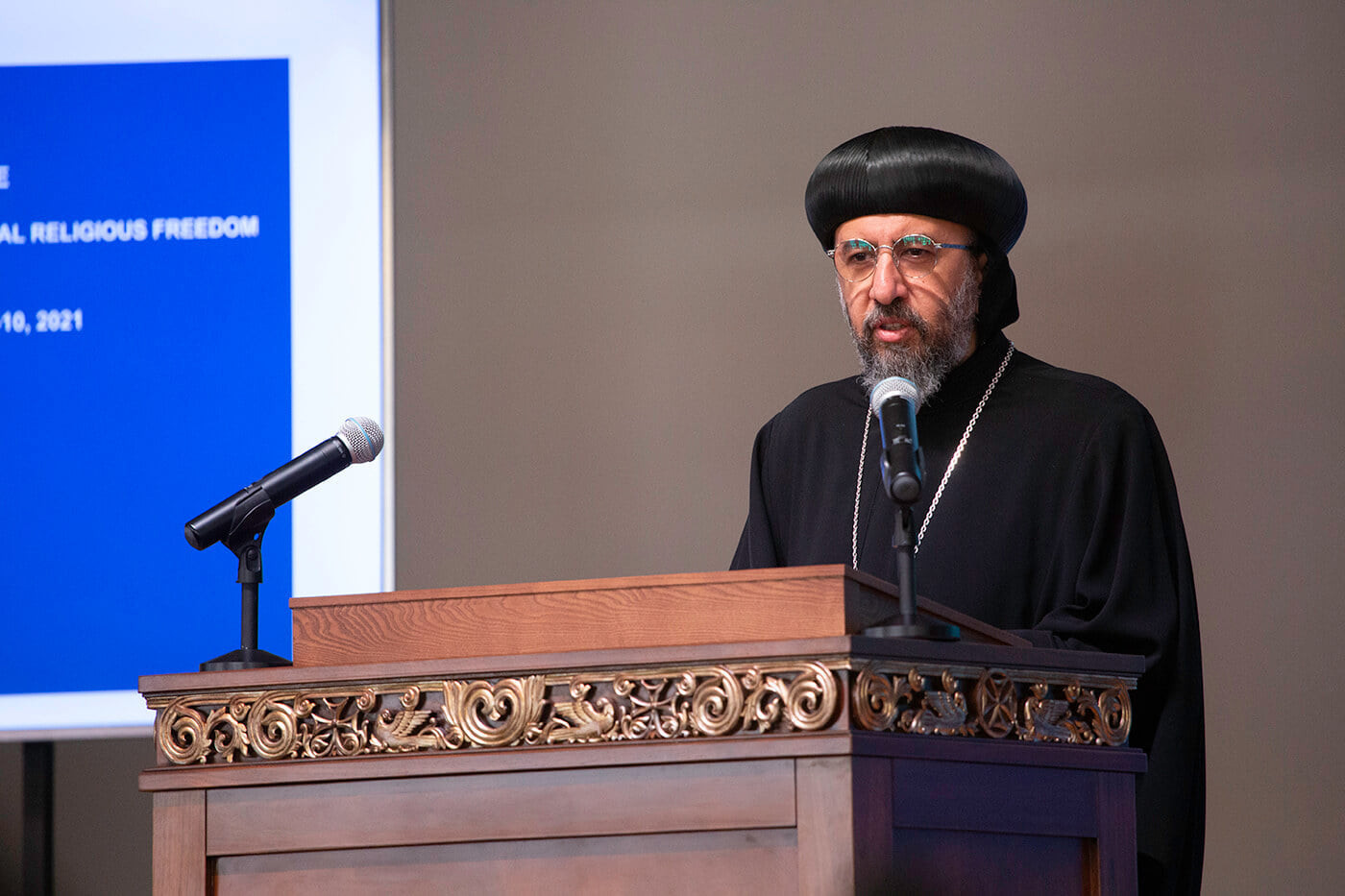 Then, Mr. Arman Tatoyan, Human Rights defender of Armenia, delivered a lecture. In his speech, reflecting on the current issues of freedom of religion, conscience and thought, Mr. Arman Tatoyan, based on the facts obtained, stated that the rights and religious feelings of the Armenian prisoners of war who were taken captive by Azerbaijan during the recent War of Artsakh, are regularly violated; as well as the Armenian spiritual and cultural heritage that is under the control of Azerbaijan, is constantly being violated. The Human Rights Defender qualified such behavior adopted by Azerbaijan as a genocidal policy.
